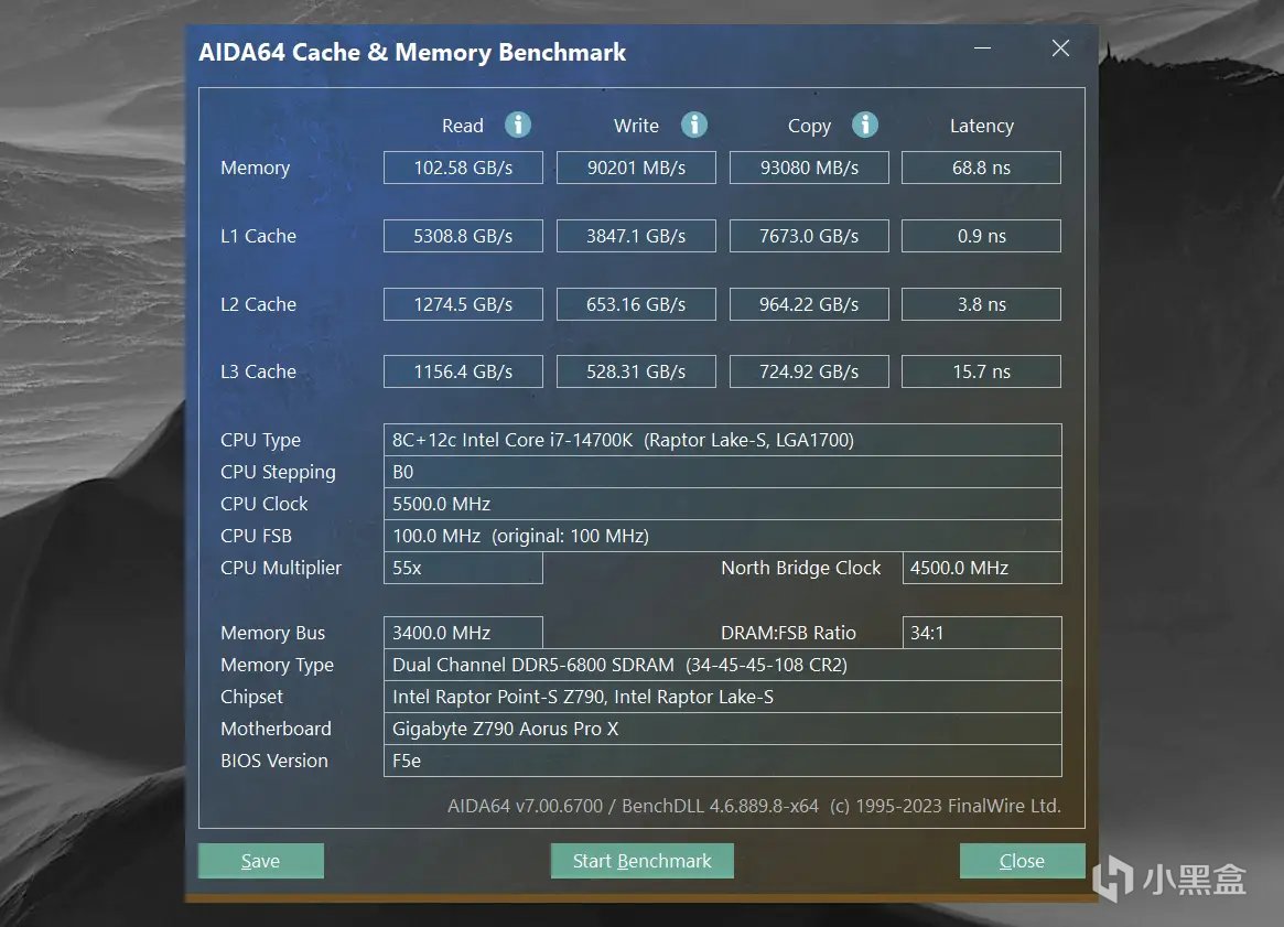 可以看到雖然同樣是XMP6800頻率,在開啓技嘉高帶寬低延時的內存優化黑科技後,內存讀寫性能都有進一步提升,並且延遲也下降了,內存能效提升還是非常明顯的,對於不會手動超頻的用戶,使用XMP高頻內存條搭配技嘉主板也能輕鬆獲得高效能內存表現。