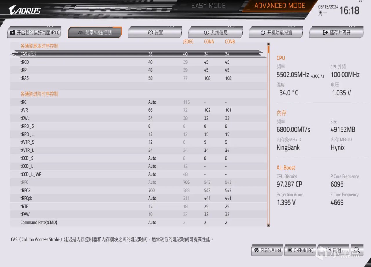 先來看看這套金百達星刃DDR5 48GB套條最後的超頻參數吧。