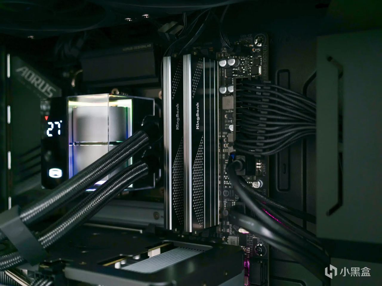 從側面看這個金屬馬甲厚度,這次金百達星刃內存採用了加厚的鋁合金散熱馬甲,裏面填充了工業級散熱硅脂來提升內存散熱效率,確保內存條在高頻運行時候的穩定性。