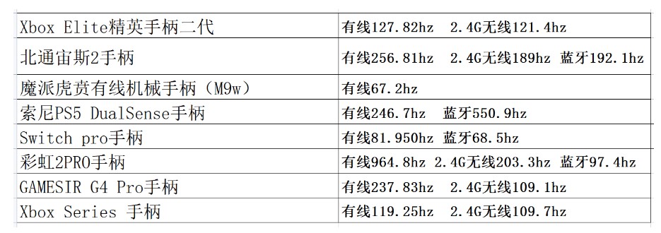 回报率我还是第一次接触,查资料才知道所谓回报率即外设向电脑发送信号频率的一个参数,单位是hz。以XBOX手柄为例,它的回报率是135hz,什么意思呢?我们知道1s=1000ms,1000除以135等于7.4,也就是说XBOX手柄每7.4ms向电脑发送一次信号,简单理解就是XBOX手柄摇杆的延迟是7.4ms。
