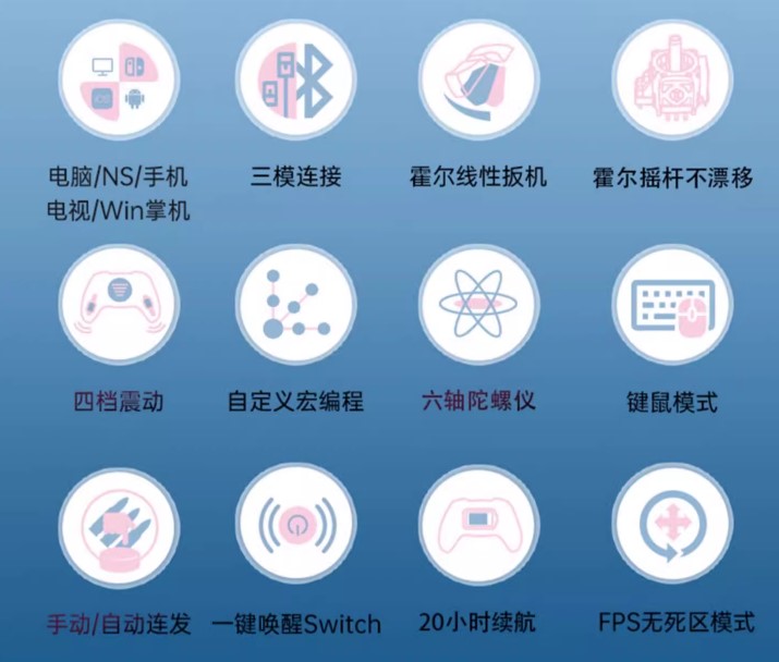 - 除了上面这些,像包括多平台连接(电脑/手机/电视/switch/win掌机)、一键唤醒switch和宏编程这些功能它都有,算是国产游戏手柄的标配了,没有的话就是扣分项了。