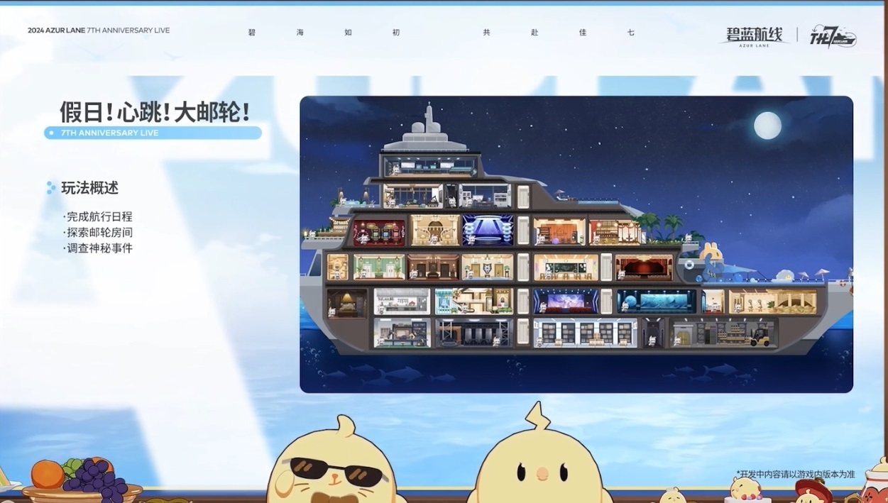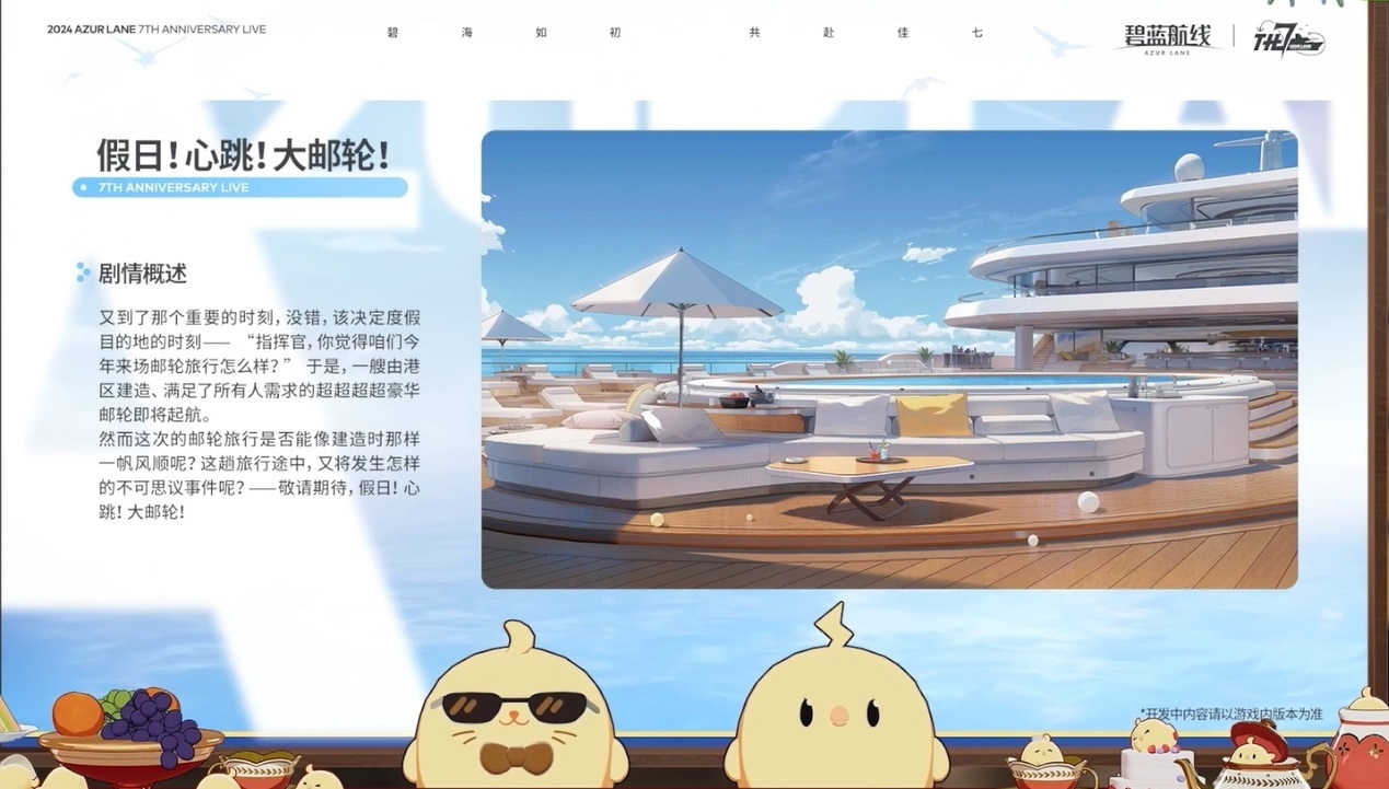 在不久後的更新中,將會推出“郵輪”主題的活動劇情,各位艦娘會換上禮服參與其中。