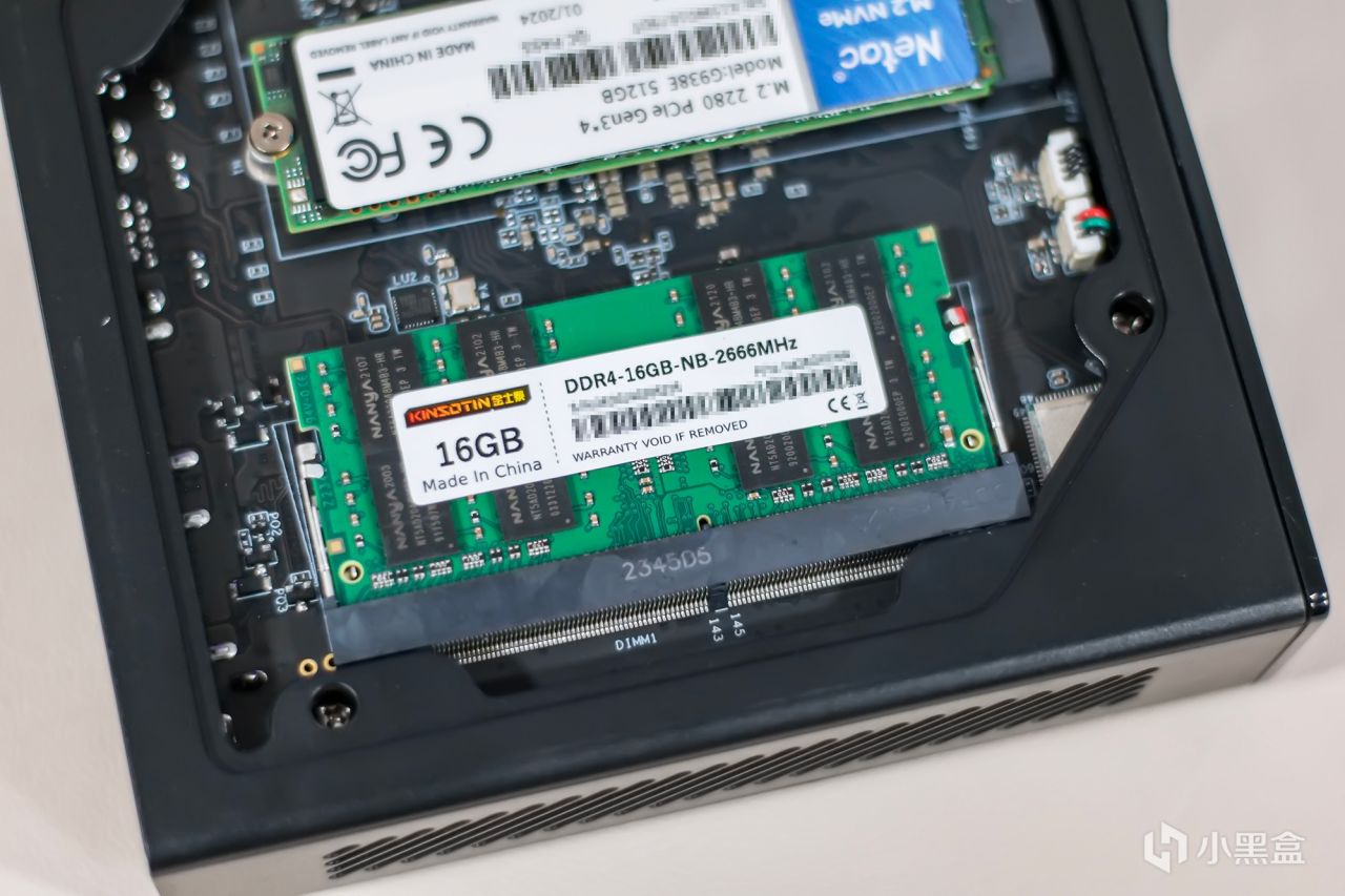 阿迈奇S1迷你主机所搭载的是单条DDR4笔记本内存条,内存条容量为16GB,运行频率为2666MT/s,该内存采用的是Nanya南亚的颗粒,16GB内存容量对于日常办公使用完全足够的,在主板上仅提供一根内存条插槽,没法加装仅能更换升级。