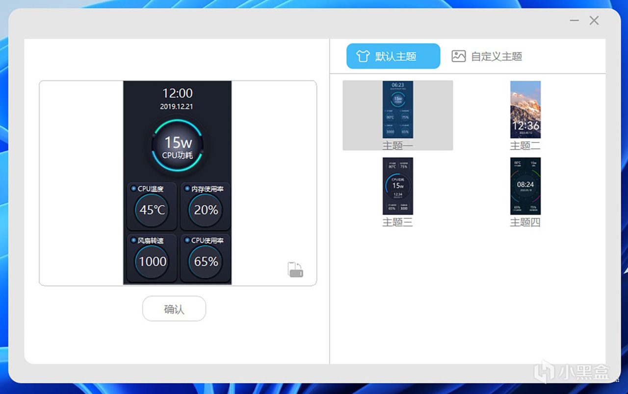 迷你主机前部的副屏显示的内容,可通过自带控制软件进行设置,该软件需要管理员权限并在后台持续运行,不然屏幕没法实时获取温度等数据,在软件中提供四个默认主题供快速切换,用户也可对显示内容进行自定义,包括设定背景图片与硬件状态等,支持导入Gif与Jpg等图片格式,不过背景仅能静态显示。