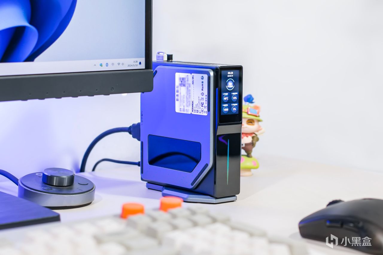 阿迈奇S1迷你主机有着轻巧便携的机身设计,并支持横放与竖放两种放置方式,随手塞到挎包中携带外出,同时不会占用太多的桌面空间,在外观设计作出多项的升级,比如磁吸式快拆侧盖设计,轻易升级更换内存条与硬盘,还有可玩程度很高的RGB状态指示灯与副屏,副屏可作为一个监控屏幕,配合配套的管理软件,直观展示处理器的功耗温度等状态,也可当做时钟和日历,其配备了双视频输出接口与双千兆网口,赋予了更多元化的玩法,比如将其构建为轻量级NAS或软路由。