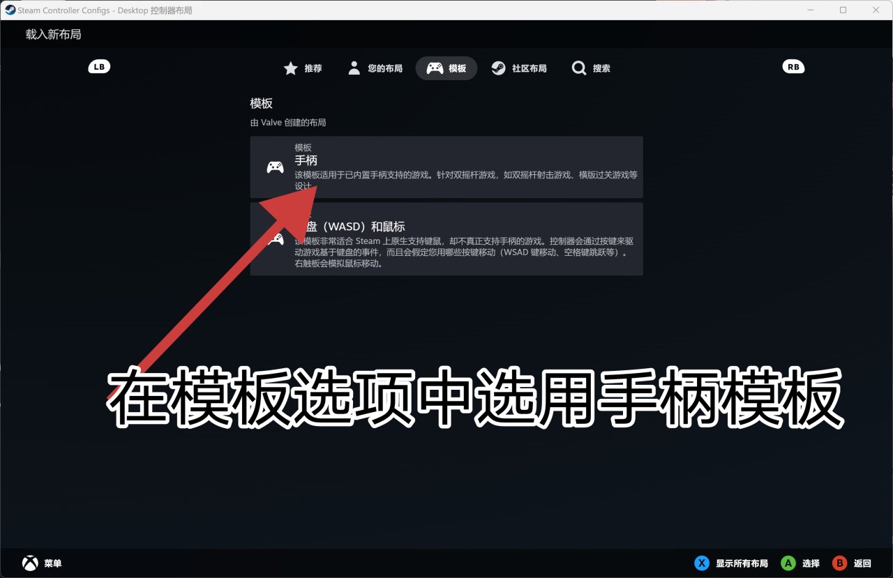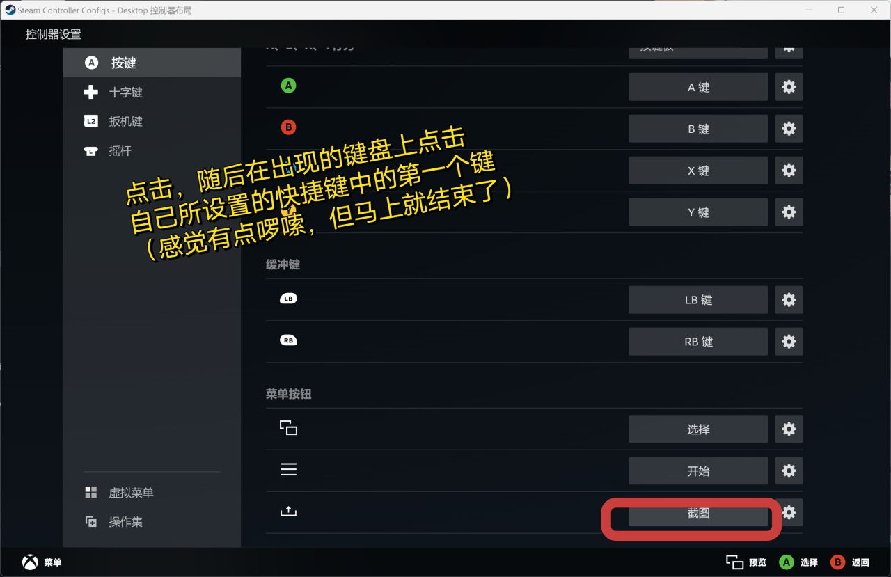 之后在steam控制器中打开桌面映射,将模板改为手柄,随后再将手柄中的截屏键映射为自己所设置的那个快捷键。