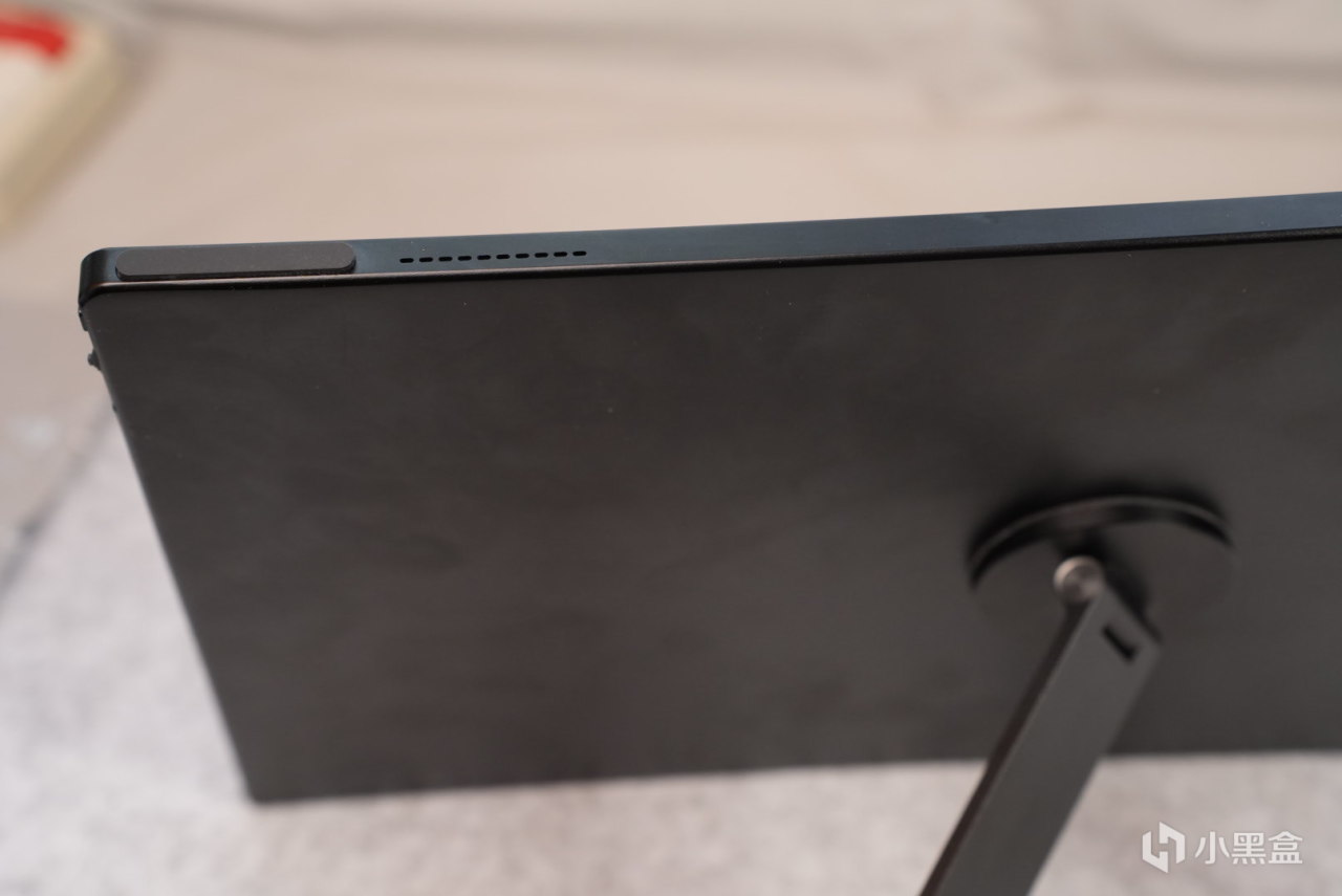 機器側邊設計了防滑貼,以及底部設計了揚聲器的孔位,對你沒看錯,這個顯示器設計了揚聲器。這麼薄的顯示器給你加了兩個小喇叭,但是說實話音質嘛。。。。聽個響就行其實。