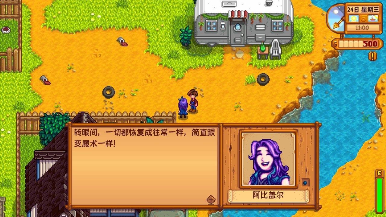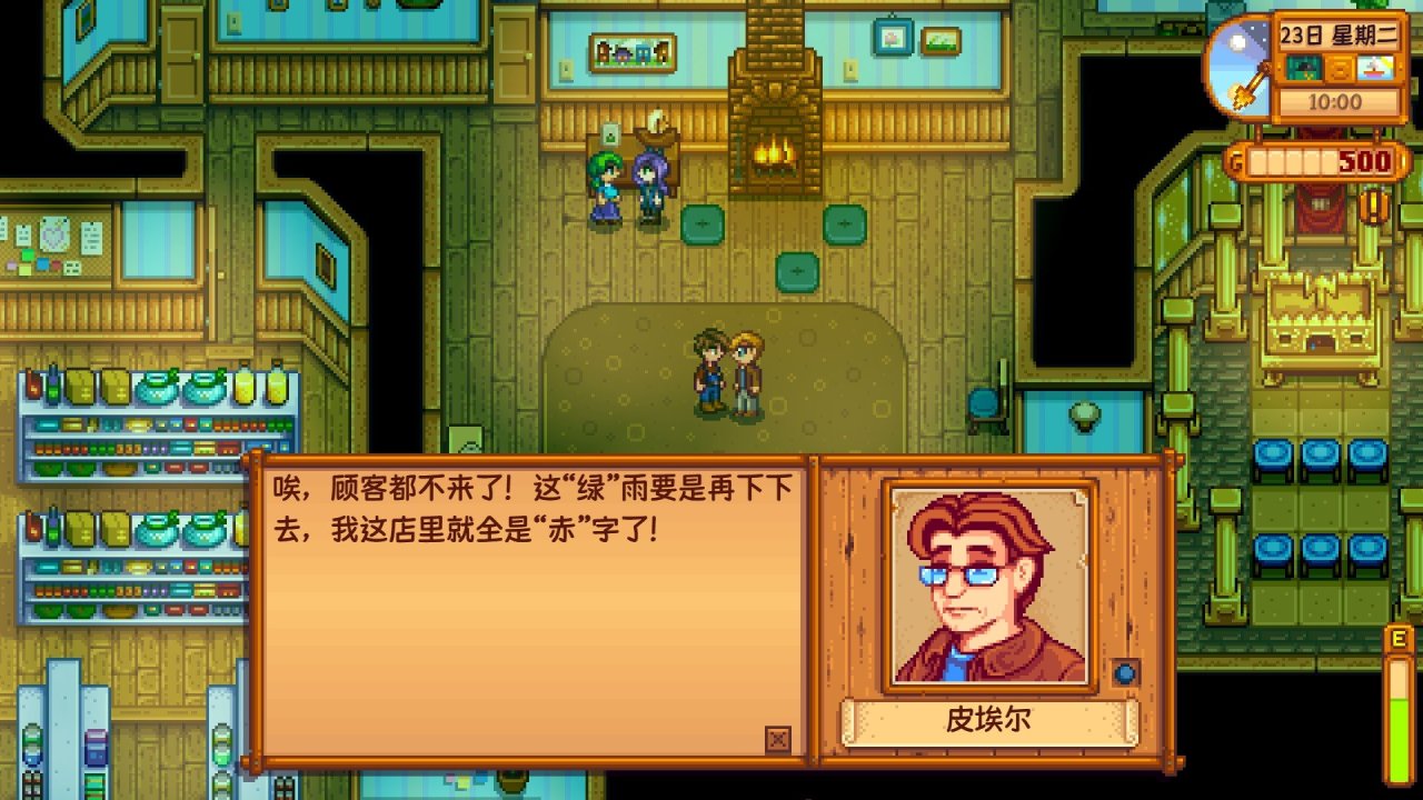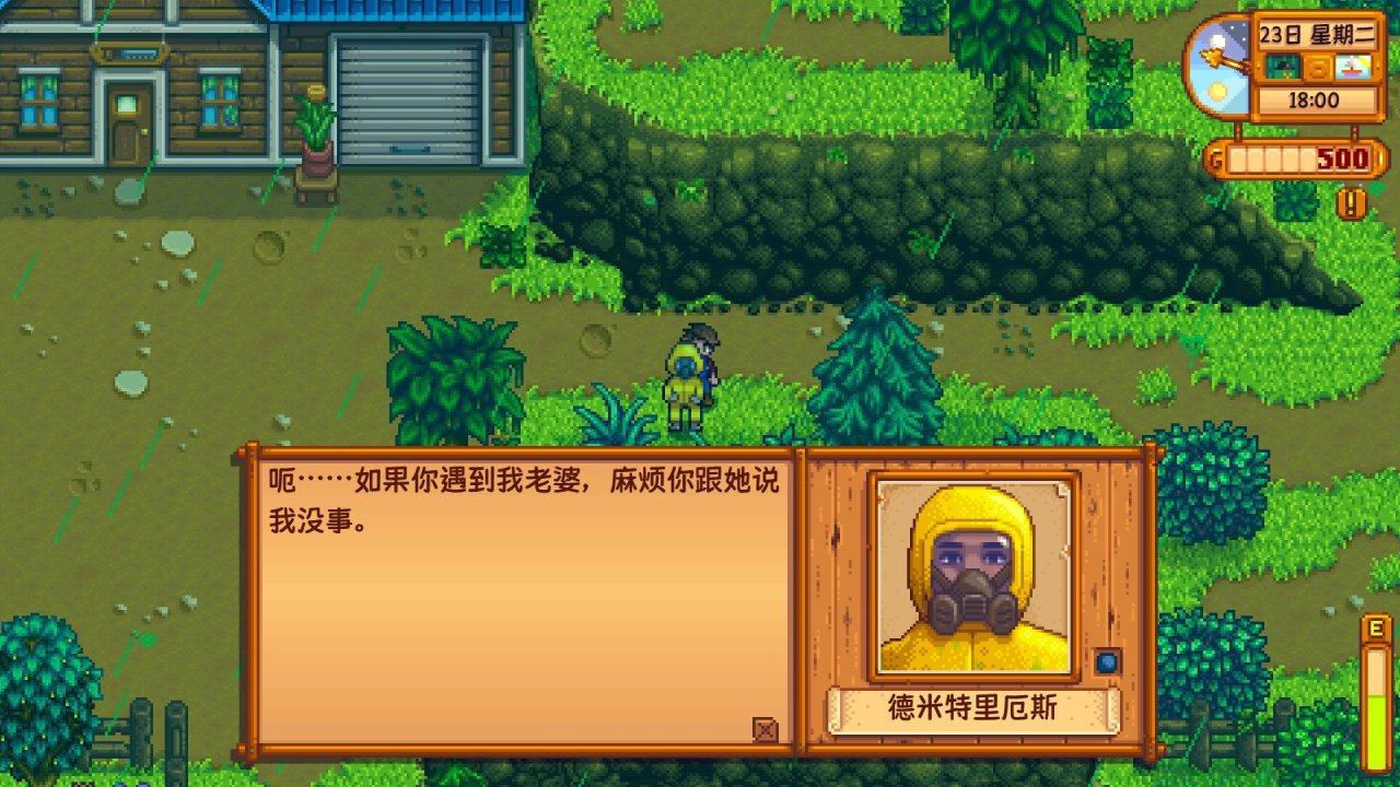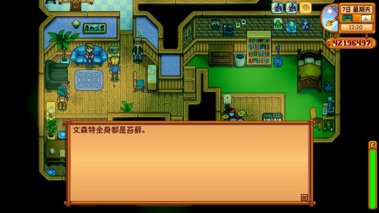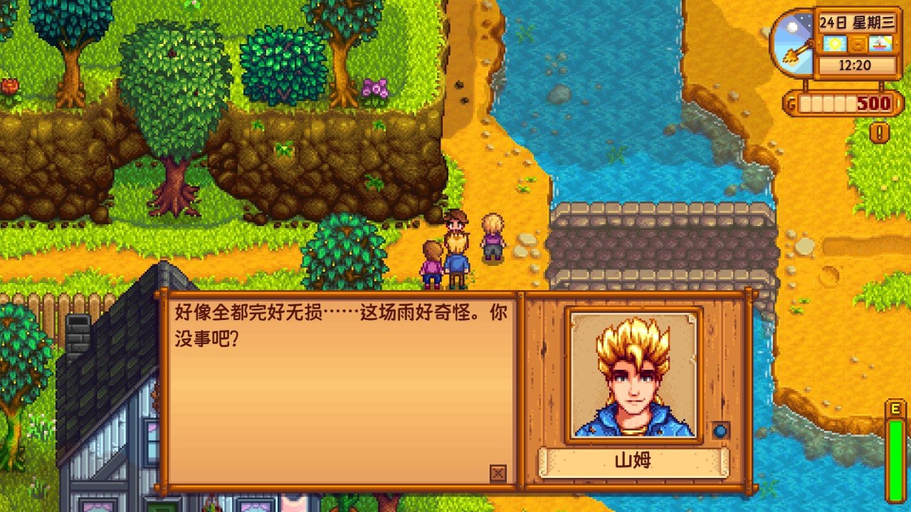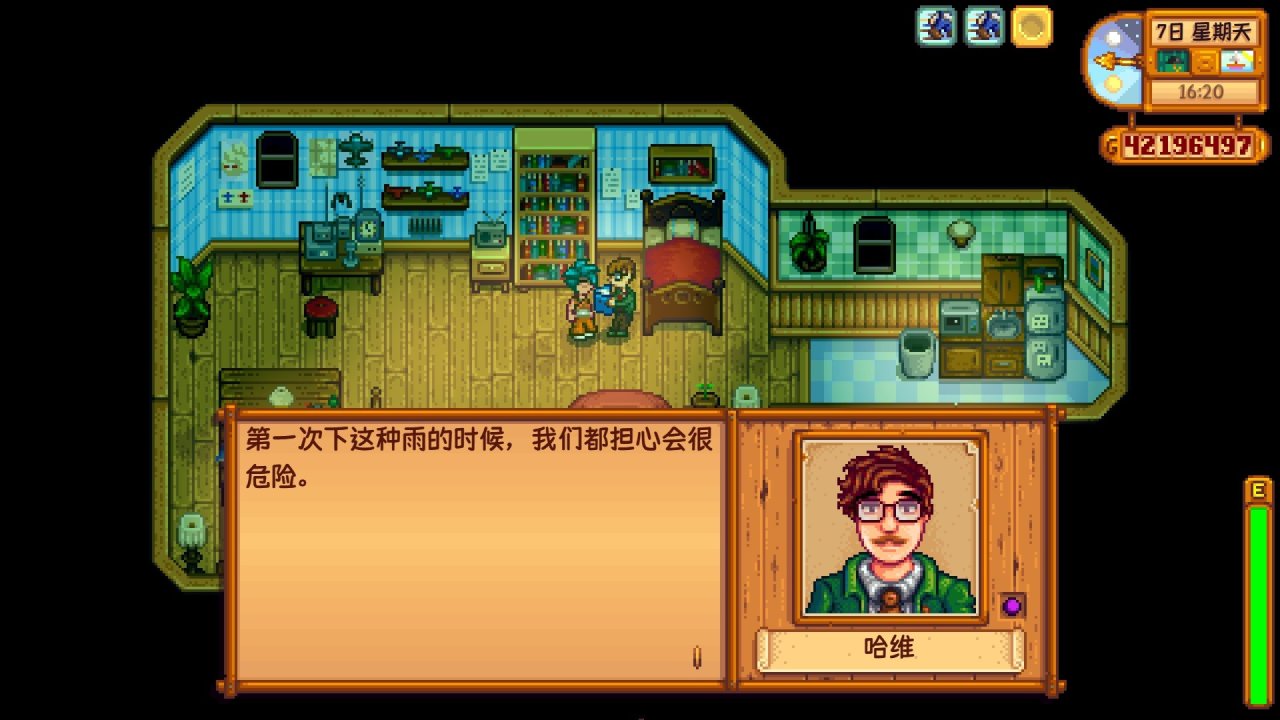 以上这几个第一年都很难解锁,有的甚至不可能,所以游戏作者应该把他们的对话固定了,下面再给大家看看第一年的绿雨结束后,第二天部分村民的反应!