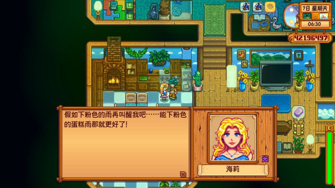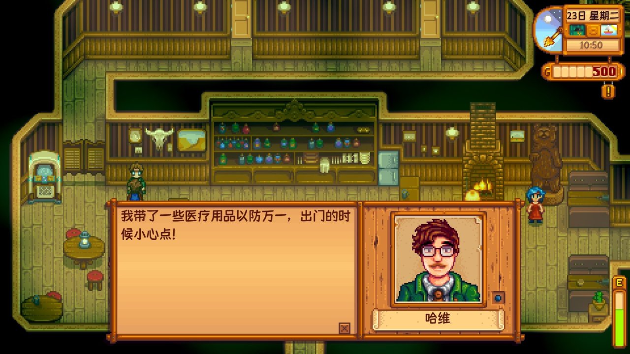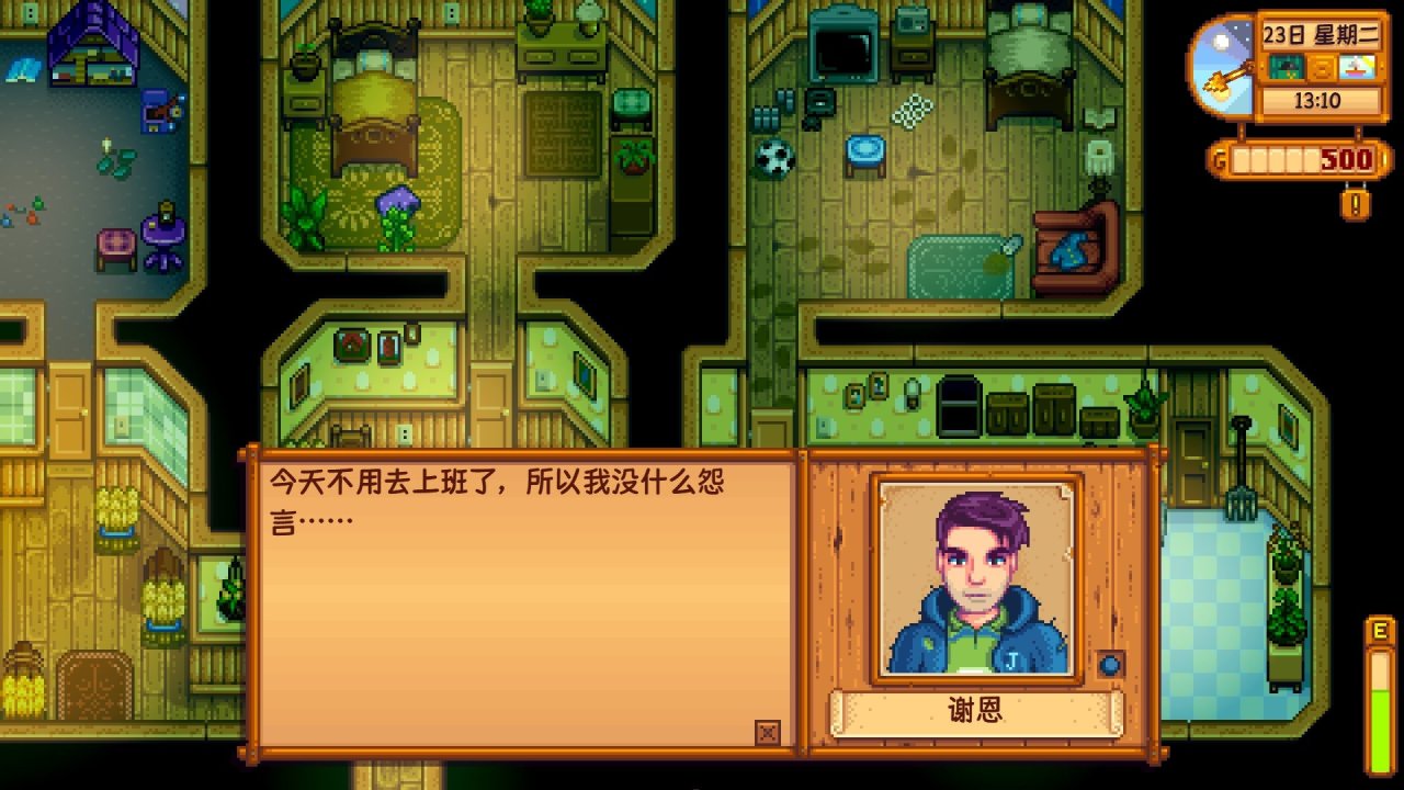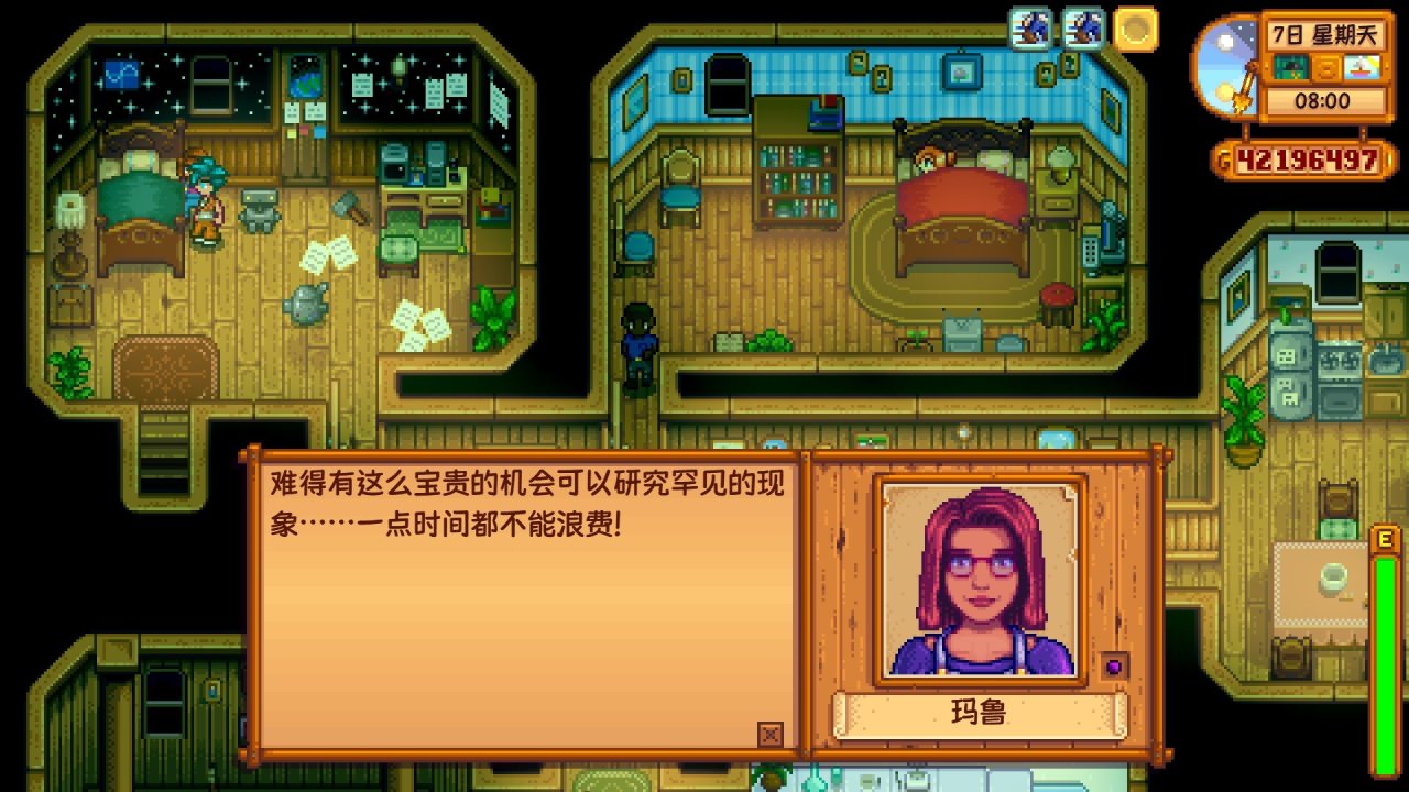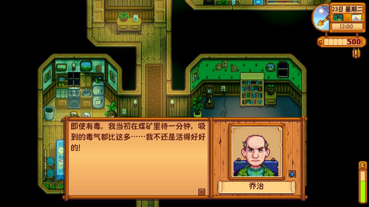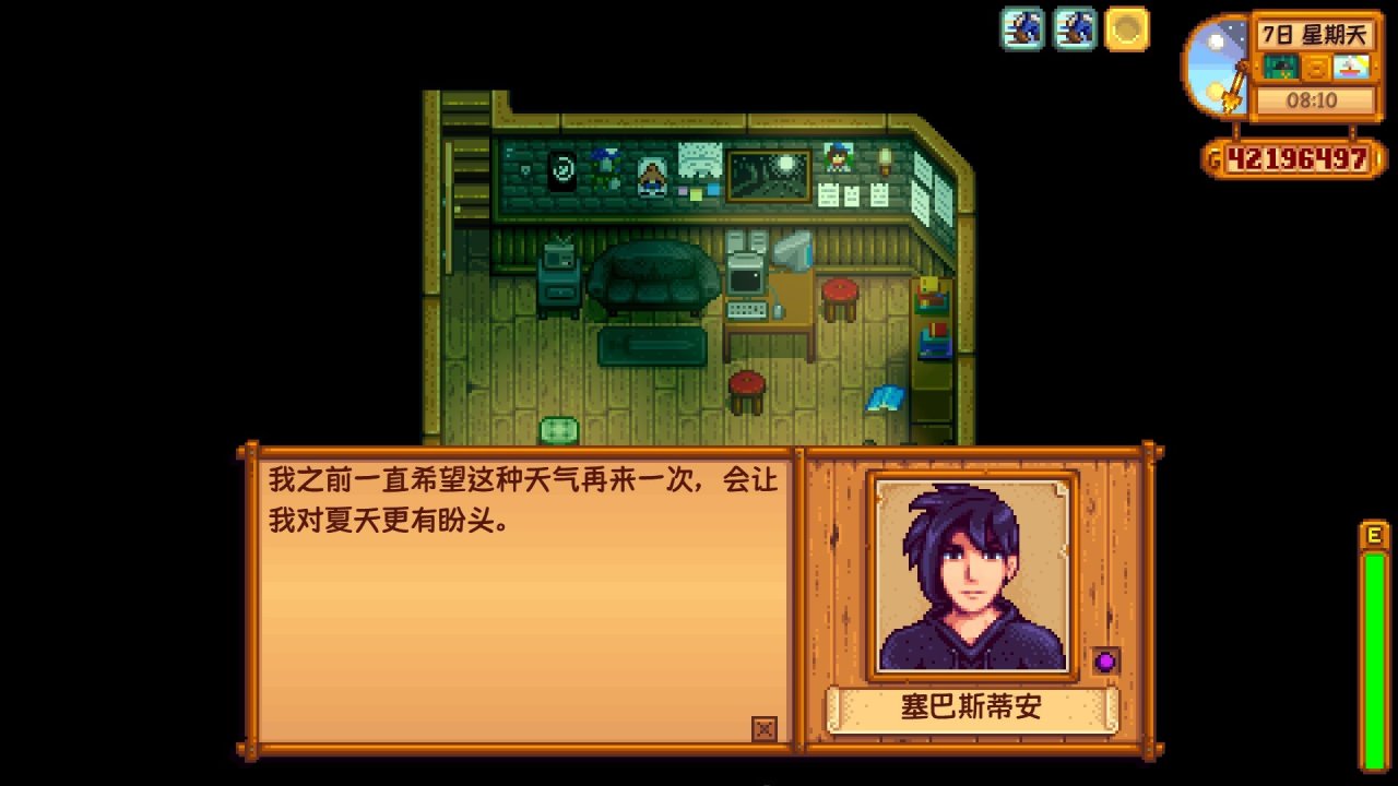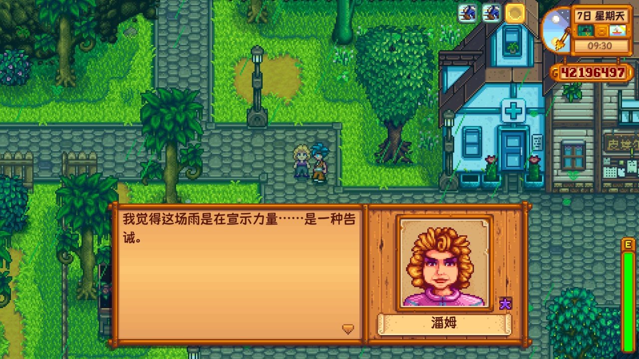 以上这几个第一年都很难解锁,有的甚至不可能,所以游戏作者应该把他们的对话固定了,下面再给大家看看第一年的绿雨结束后,第二天部分村民的反应!