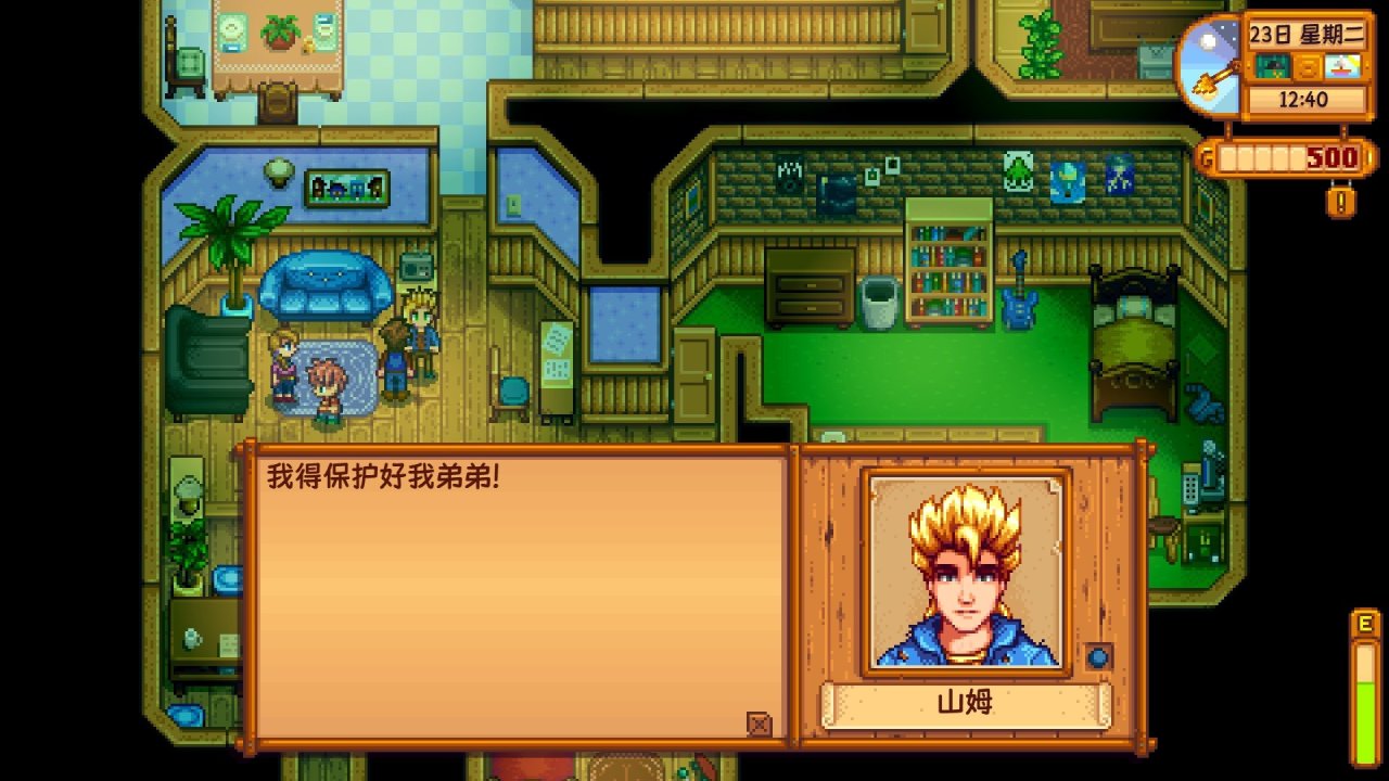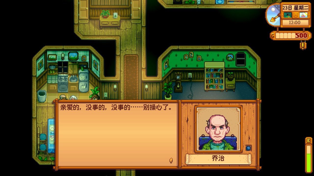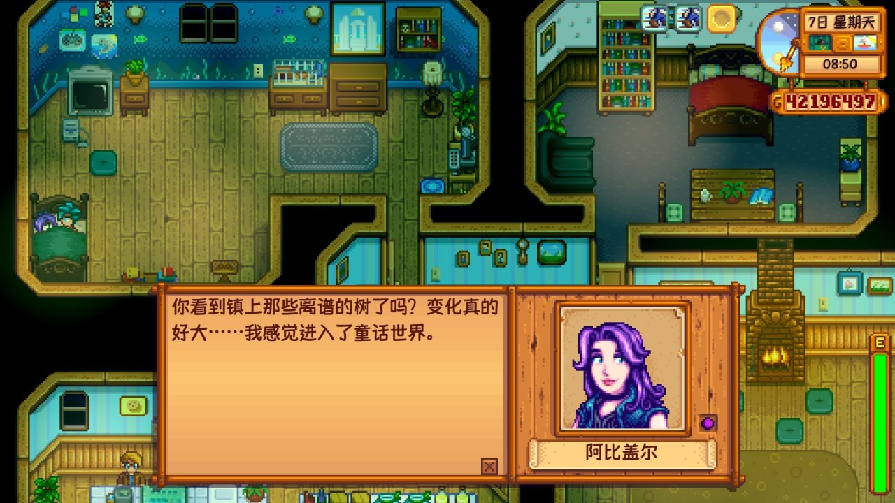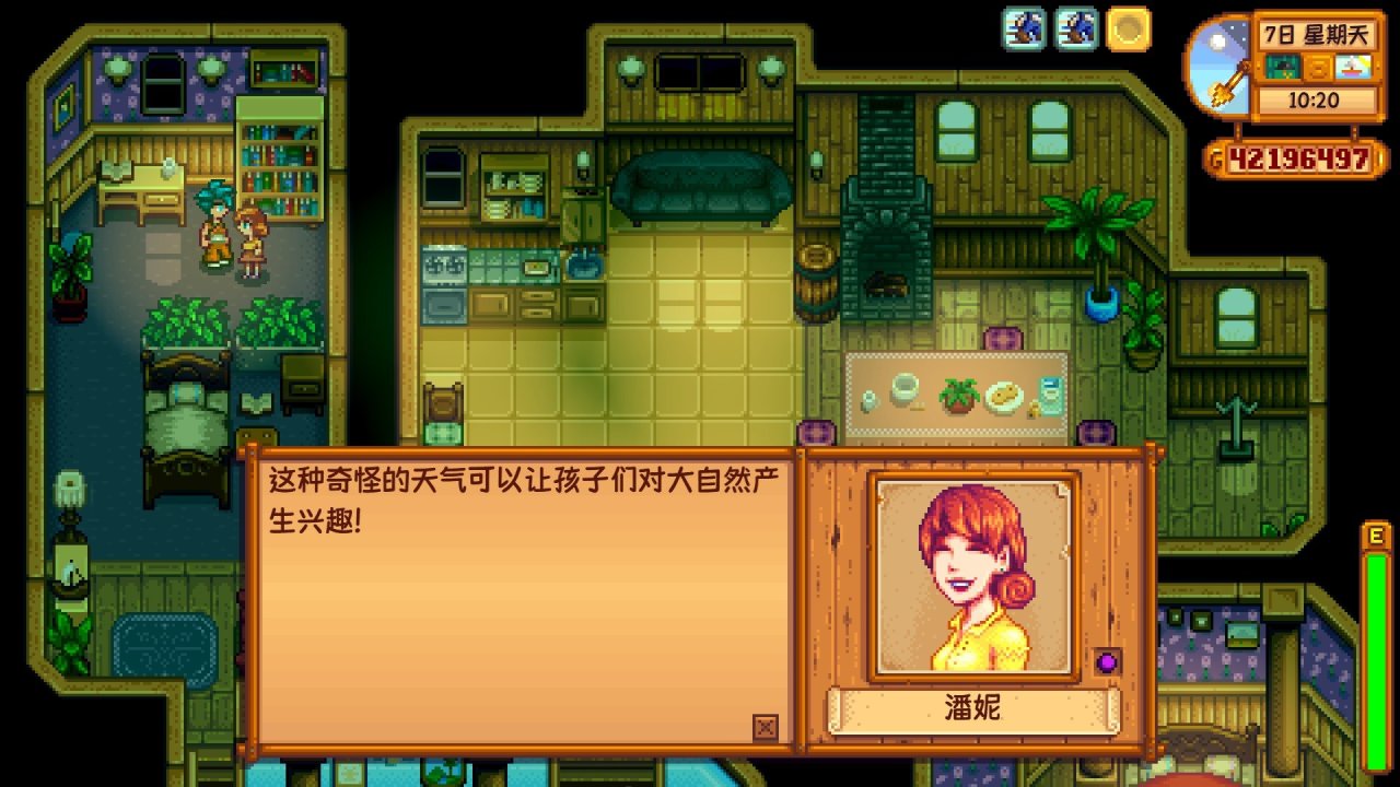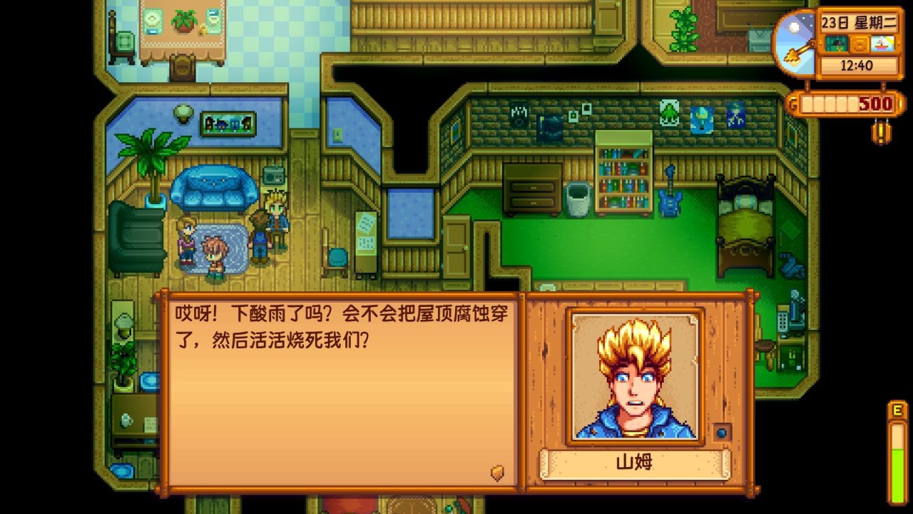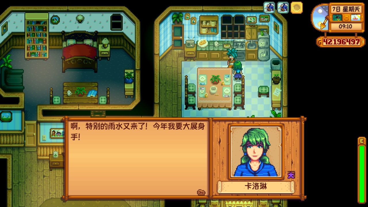 下面我就不放第一年的行程了,因为第二年开始村民们都不会害怕这个绿雨了,所以按照不了我第一年的行程走,下面我就只放每个家庭中的成员对话了!因为小黑盒的图片上限问题,有些对话我会用文字来打出来,各位谅解一下