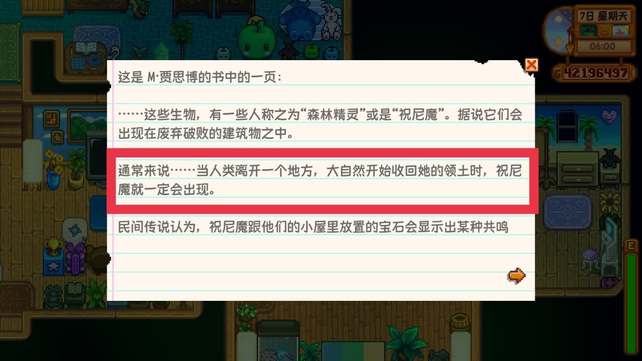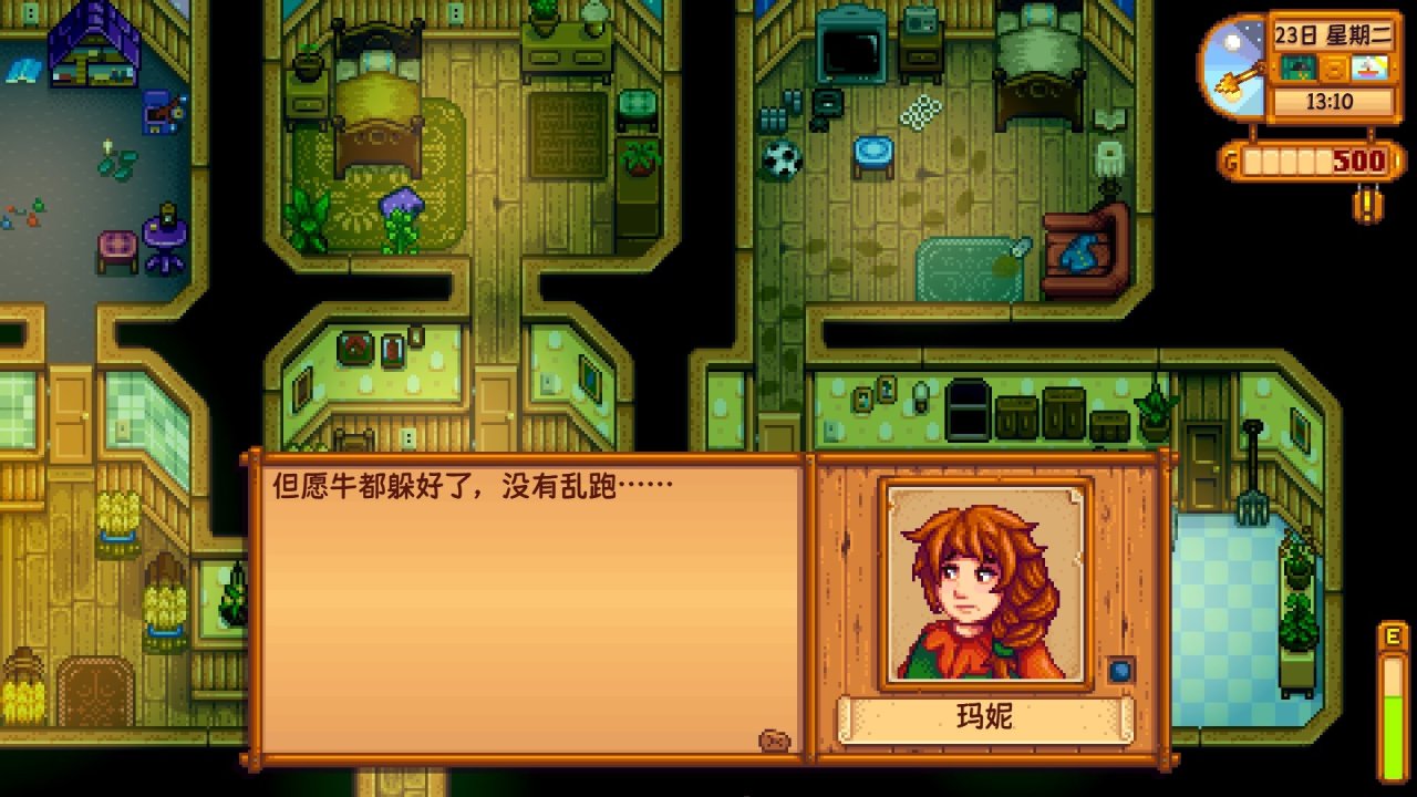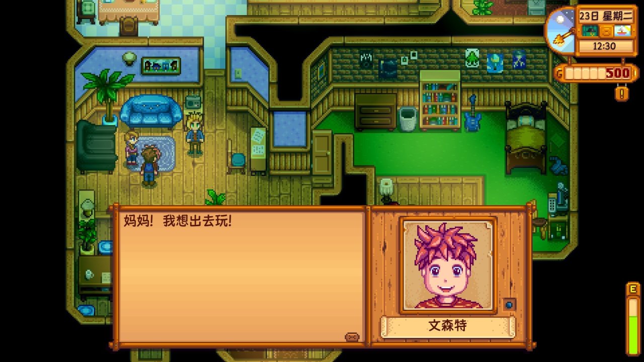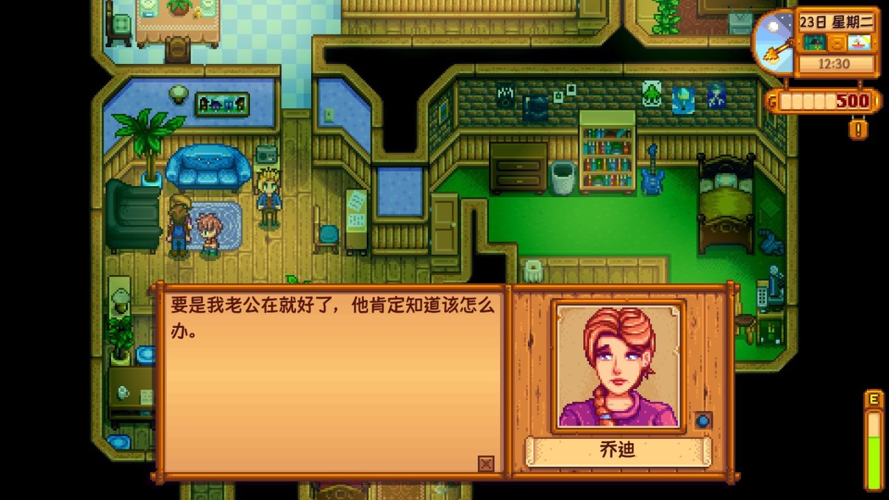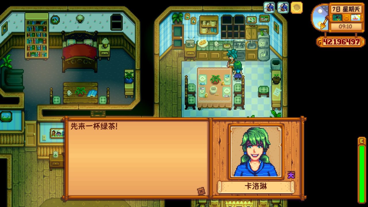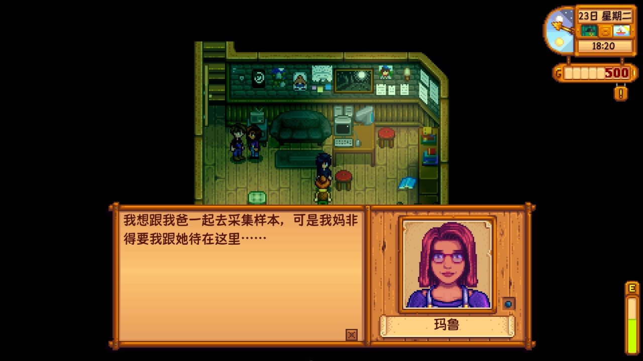 下面我就不放第一年的行程了,因为第二年开始村民们都不会害怕这个绿雨了,所以按照不了我第一年的行程走,下面我就只放每个家庭中的成员对话了!因为小黑盒的图片上限问题,有些对话我会用文字来打出来,各位谅解一下