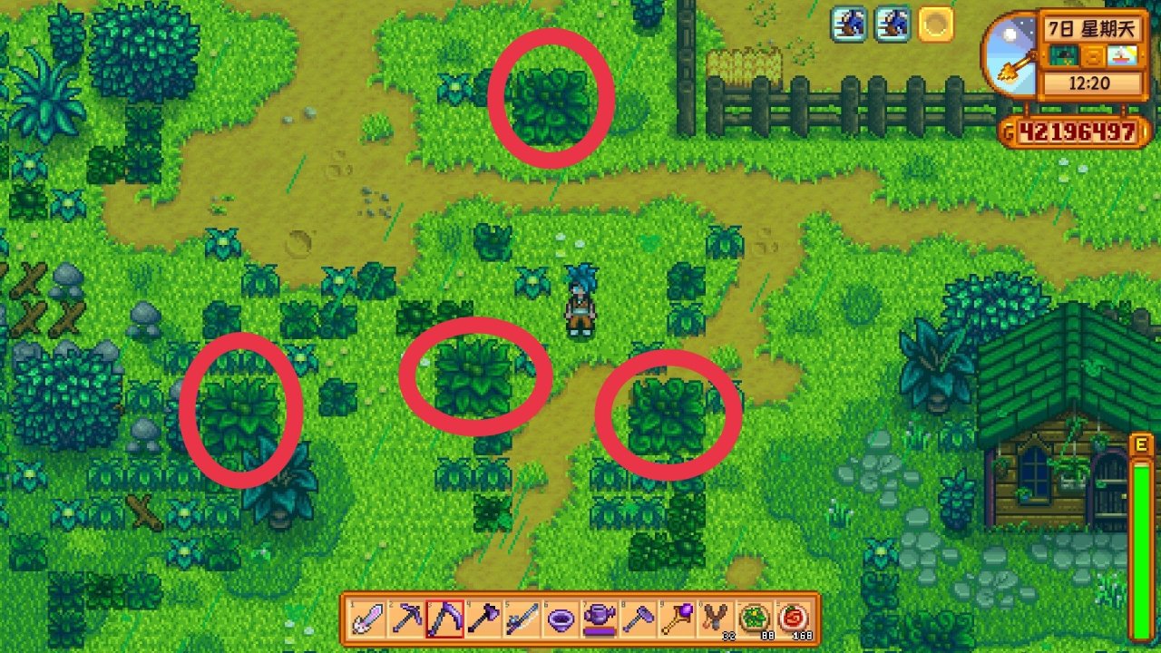 当我们出去室外时,会发现外面长满了杂草,其中还有一些大型的杂草,绿雨当天用镰刀收割杂草,杂草会有概率掉落苔藓,纤维,混合种子和混合花卉种子,用镰刀收割大型的杂草会获得15点采集经验,且大型杂草必定掉落纤维与苔藓