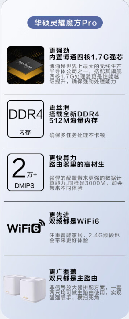▲目前华硕所有在售的路由器,不分系列,部分芯片解决方案,均支持AiMesh 2.0技术,可以作为网络节点组建全屋Mesh网络,让用户可在大户型中享受网络无缝漫游。因此,早期入手的入门级华硕路由器,后面依旧有用武之地,不用担心买了浪费。