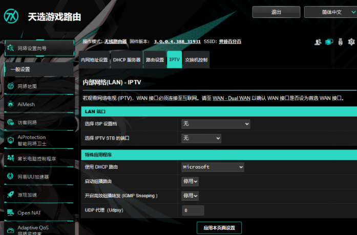 ▲这款路由器的二次元风很足,不仅配备了TX信仰灯,其固件后台,也是天选主题的,所以天选粉丝选这款准没错。