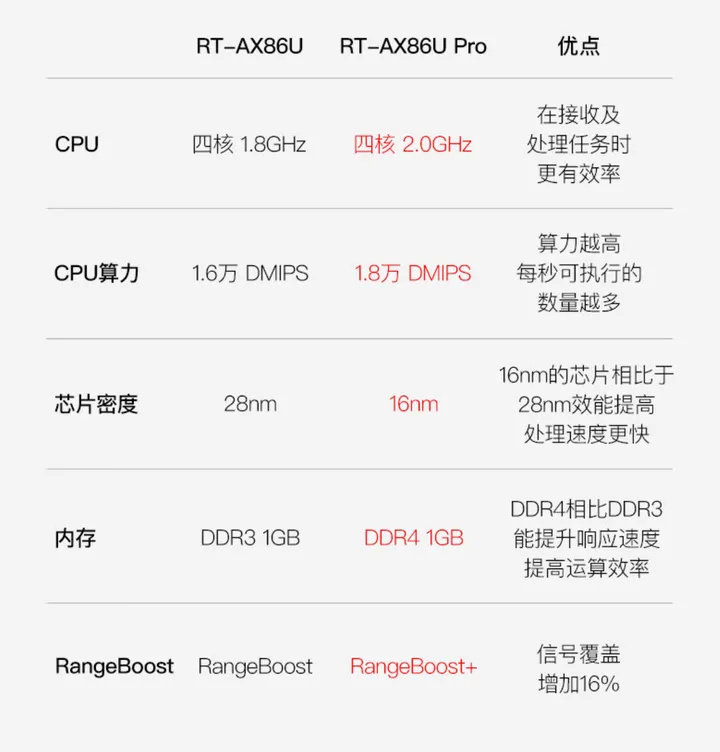 RT-AX86U Pro搭载的SoC为博通BCM4912,16nm制程,4核2.0GHz频率,内存性能也得到了进一步提升,放在现在也很是优秀,如果不着急升级WiFi 7,也可以考虑这款。
