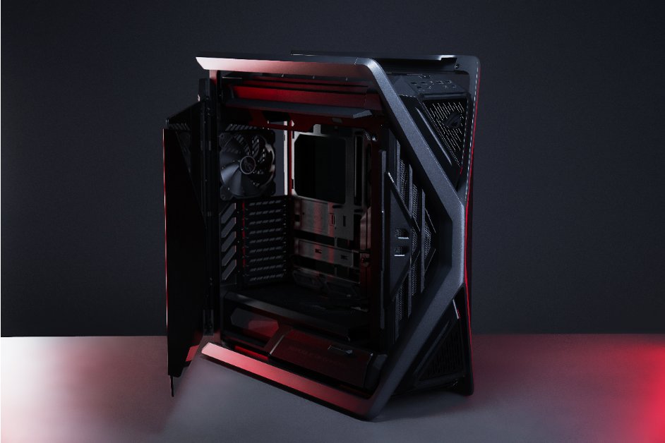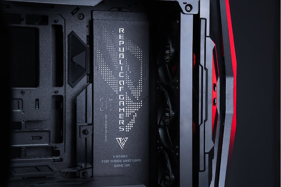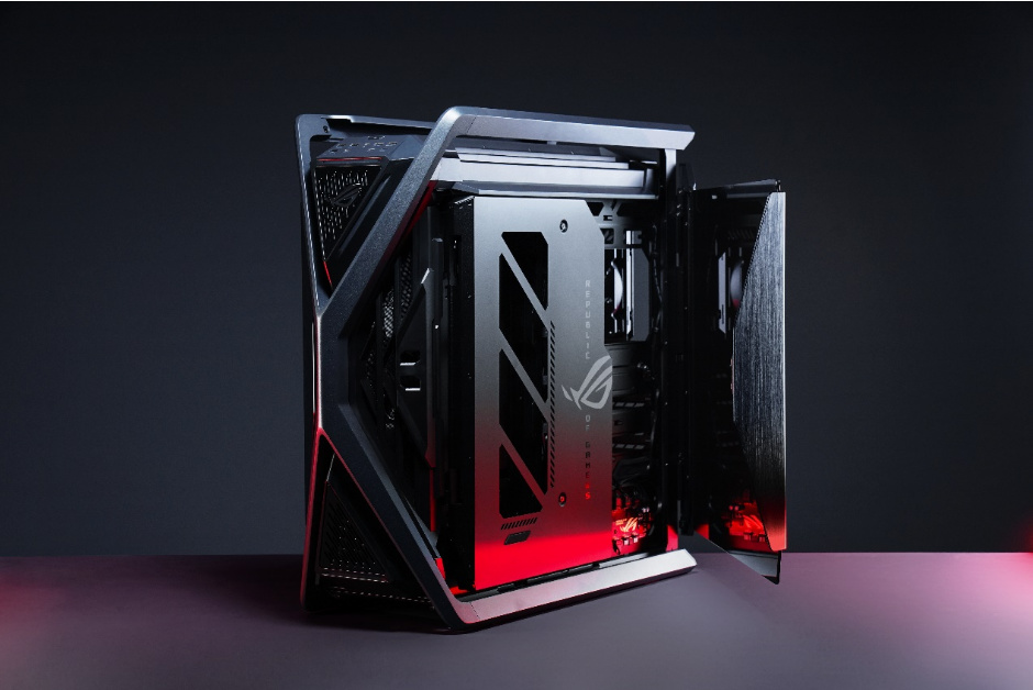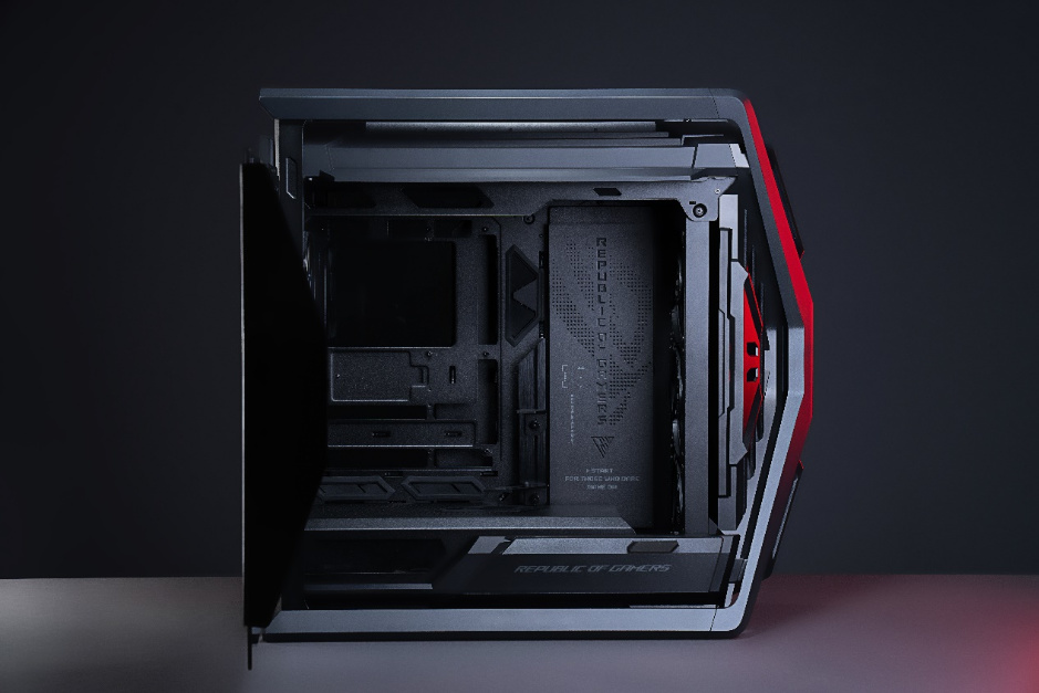 ROG創世神BTF機箱和原版一樣是採用的左右開門式側板設計,且均爲磁吸設計,開啓比較方便。打開後就可以看到其內部設計與原版的不同,主板安裝位上可以看到專爲BTF背置系統提供的開孔。
