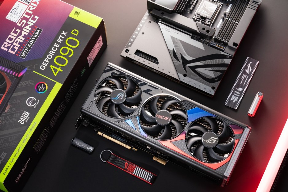 與ROG MAXIMUS Z790 HERO BTF主板搭配的背置顯卡是ROG STRIX RTX4090 D 24G BTF GAMING。