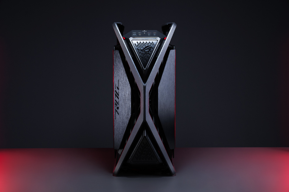 ROG BTF 2.0背置“無線”解決方案的最後一員就是ROG創世神BTF機箱。從外觀上來看,BTF版創世神和原版創世神沒有明顯區別,正面巨大的X型金屬框架非常拉風,讓機箱充滿了力量感與科幻氣質。