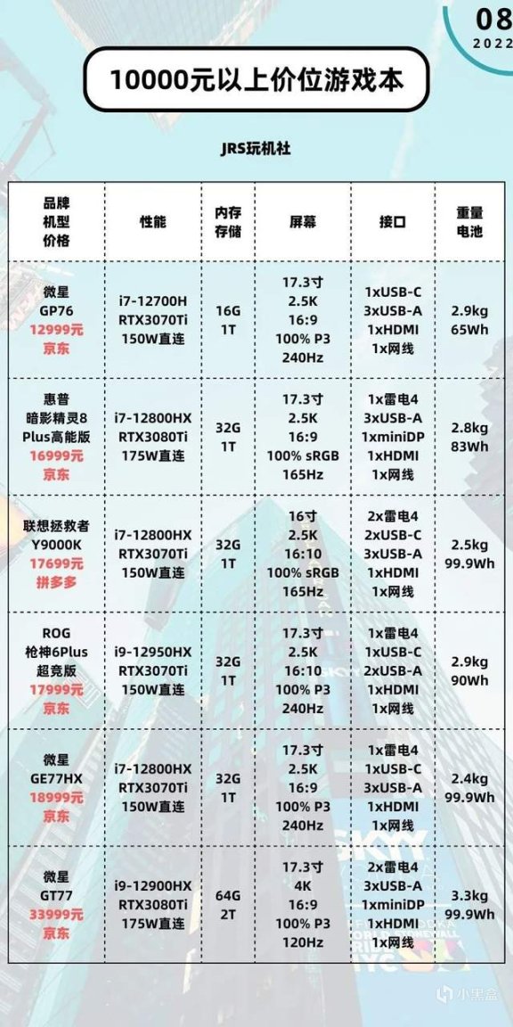 目前来说,能买到的RTX3070Ti游戏本里面,GP76算是一款性价比很高的17寸大屏游戏本,散热表现优异,屏幕素质高。