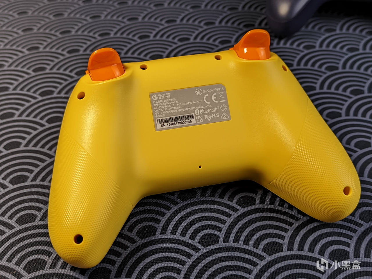 翻到背面就没啥太大值得说的地方了,唯一的区别就是铭牌上的GAMESIR换成了盖世小鸡的中文LOGO,或许彩色版是国区限定?就和罗技家的鼠标一个路数?这边咱也不知道,咱也不敢说。