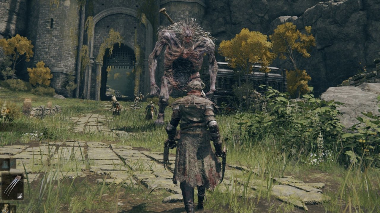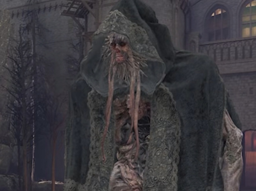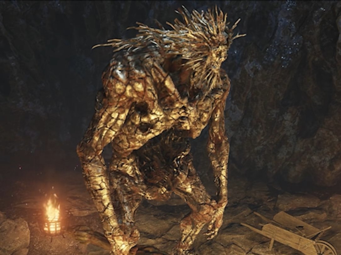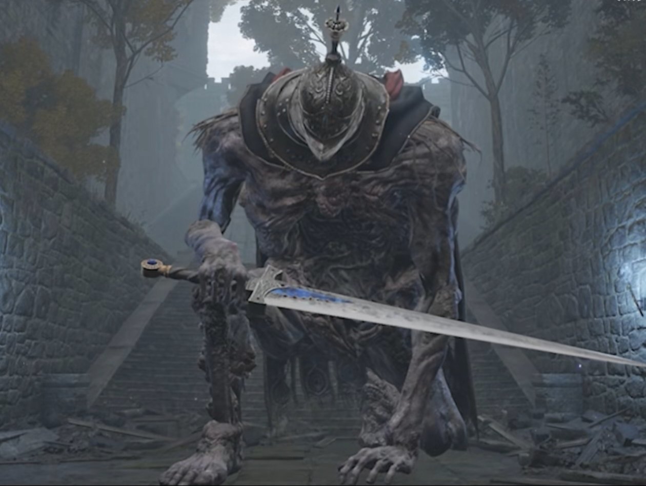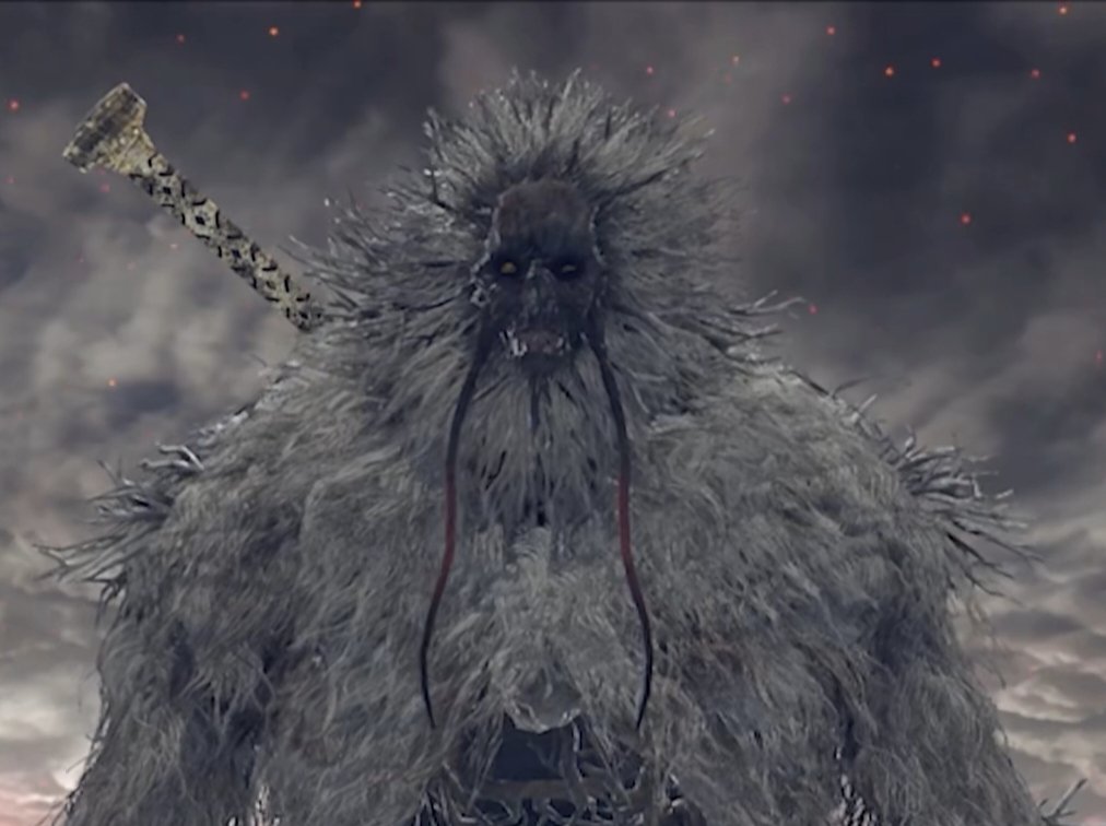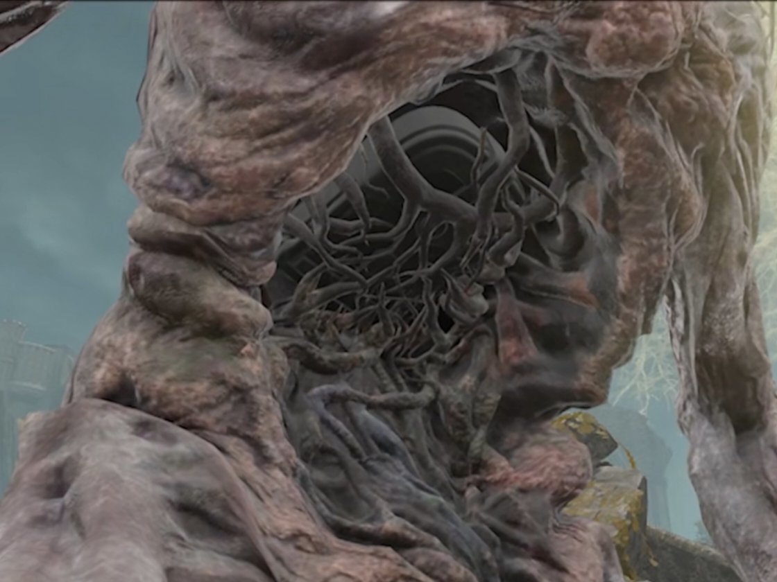 山妖屬於大體型怪物之一,褪色者站到它的旁邊還沒有它的小腿高。山妖的攻擊招式範圍大,傷害高,而且還有二階段,對於新人來說是一個比較難纏的怪物。不過老艾爾登之王們都知道,山妖雖然看起來很嚇人,但實際上是一個紙老虎。它的動作大開大合,後搖很長,玩家一旦熟悉了它的攻擊方式,擊敗它就變成了一件輕輕鬆鬆的事情。