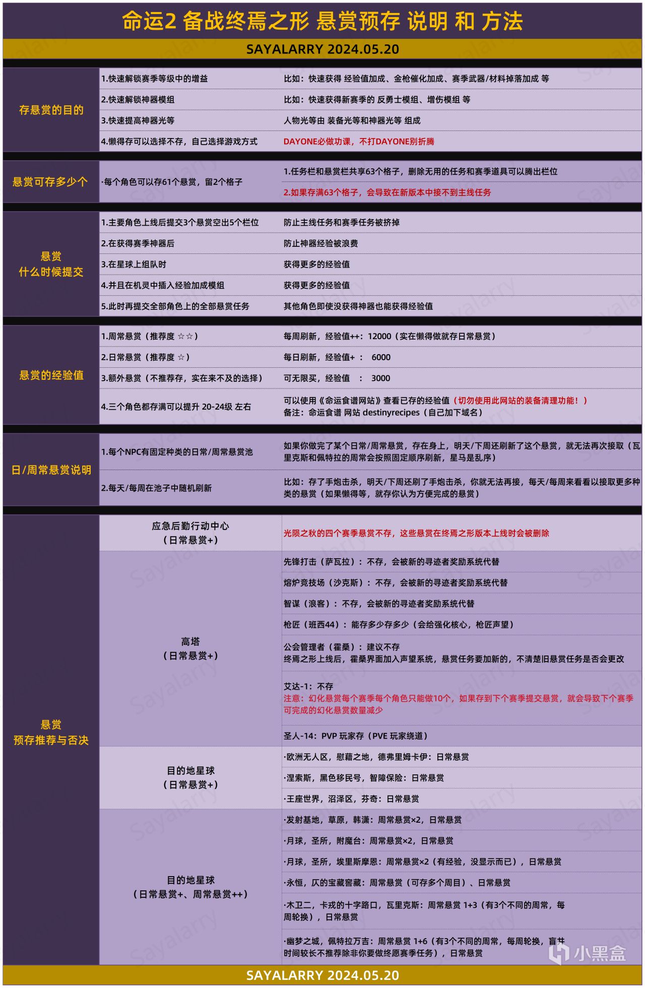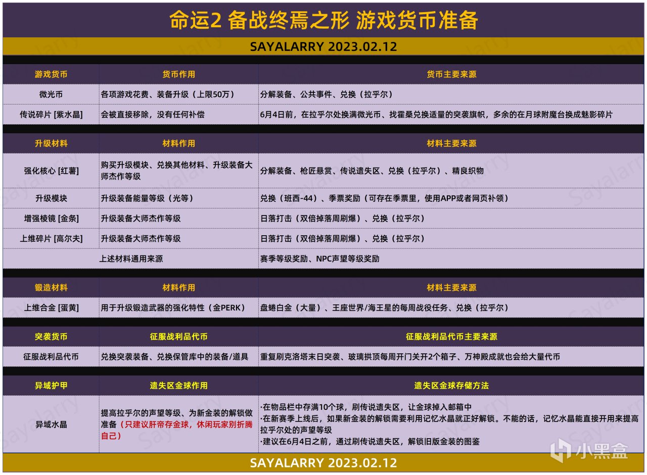 涉及內容:海王星、S20 韌戰賽季、S21 深淵賽季、S22 奇巫賽季、S23 終願賽季、進入光能、終焉之形可強化武器一覽,懸賞預存 說明 和 方法,遊戲貨幣準備