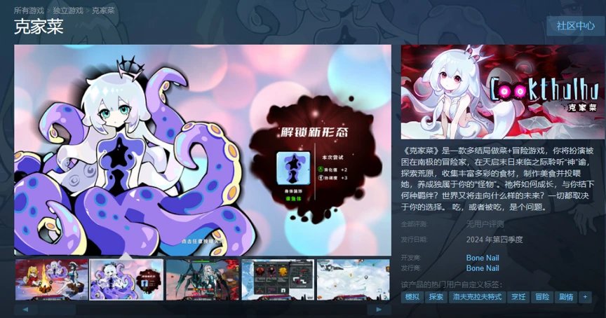 庭院还在史低折扣中,《克家菜》可以steam搜索 添加愿望单啦,贴贴