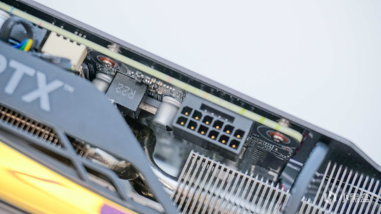 ▲ 显卡使用12VHPWR的供电接口,显卡顶端是有个渐变色的ARGB灯效,质感的确是颇有蜘蛛侠那种蛛丝的元素。