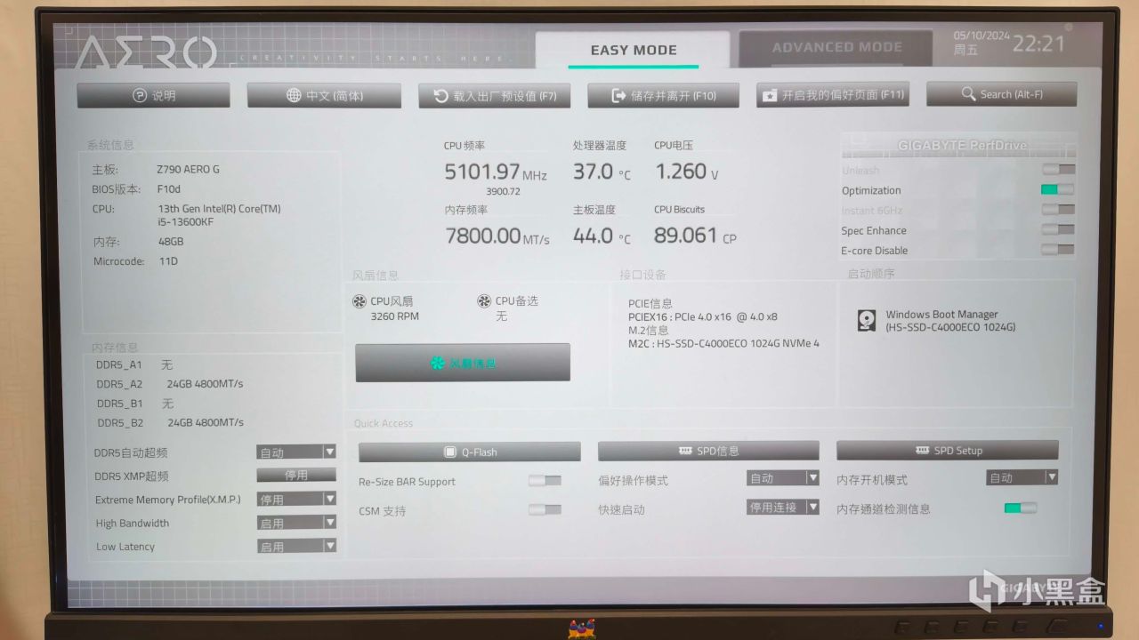 ▲ 技嘉Z790 AERO G主板采用4根DDR5双通道插槽,支持XMP 3.0技术,内存容量四海哥我实测过完美支持单根48GB,搭配技嘉独家的高带宽、低延迟D5黑科技在不手动超频的情况下就能享受到直观的内存性能提升。