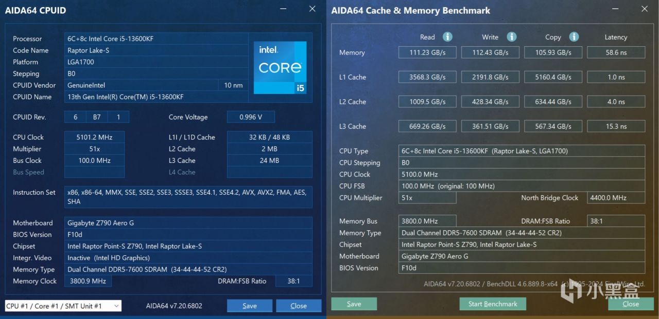 ✅ 金百达白刃DDR5-6800的海力士M-Die颗粒48GB(24GB × 2)套条实测用酷睿i5-13600KF处理器在技嘉Z790 AERO G主板下也能轻松超频到7600MHz,开启了技嘉黑科技的高带宽和低延迟让内存性能有了15%的性能提升。