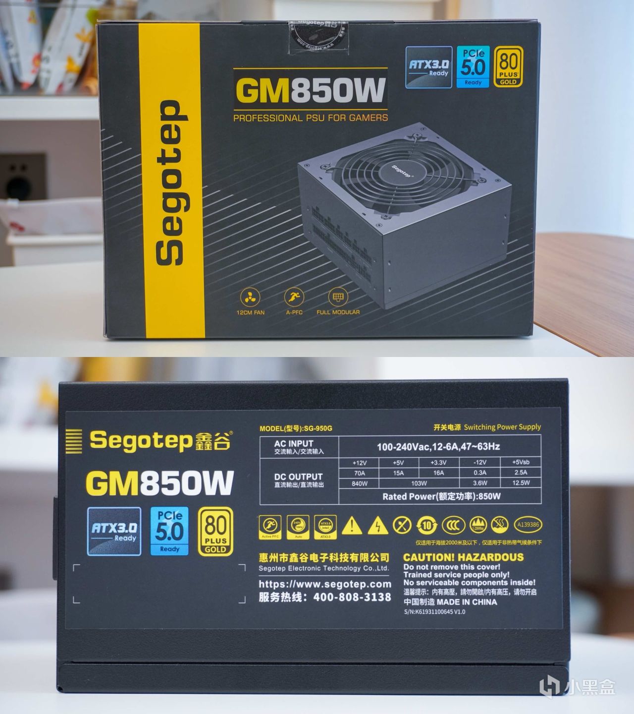 ▲ 鑫谷GM-850W电源拥有80 Plus金牌认证、全模组、ATX 3.0和PCIe 5.0 12VHPWR显卡供电线支持,在性价比上是款不错的选择。