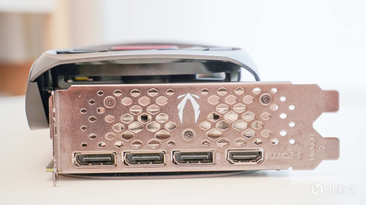 ▲ 索泰RTX 4070 Ti AMP AIRO SPIDERMAN蜘蛛侠联名显卡在接口方面配备了3个DP 1.4和1个HDMI 2.1,期待未来NVIDIA能够将全功能USB Type-C接口纳入标配接口。