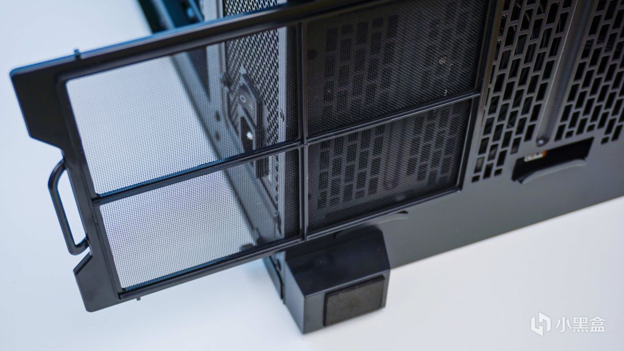 ▲ 追风者机箱没有使用磁吸防尘网,而是这种抽拉式的防尘网设计,使用方面没有太大区别。