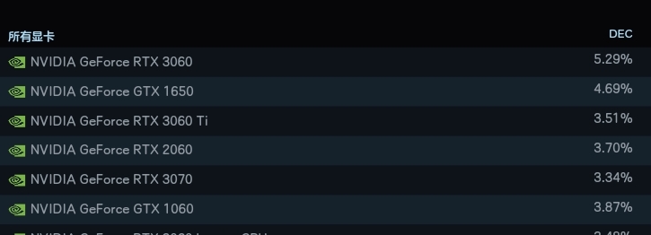 雖然在網上大家人均4090,但是在steam的硬件調查卻是另外一番境地。不是十分準確的數據,但是還有一定參考性。顯卡大多還是3060爲主,其餘的1650和360ti分次排列。網絡遊戲一般都是1080p不喫配置,單機遊戲可就另說了。一般都是2K起步,配置方面就不用多說了吧。