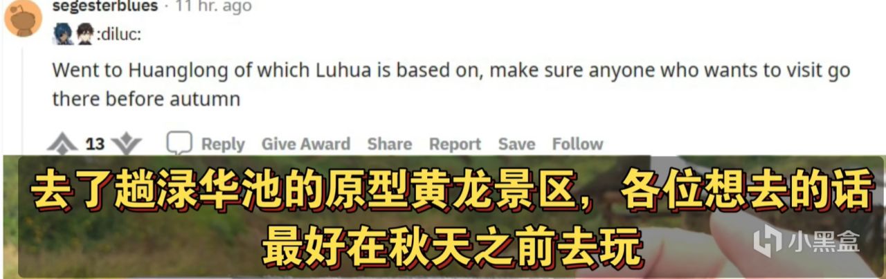而这些已经动身前往各大景区参观的玩家,还在海外各大平台为其他玩家提供情报服务。有去了绿化池的原型黄龙风景区的原神玩家就表示,想要更直观的感受黄龙风景区之美,那最好还是在秋天前就去玩。