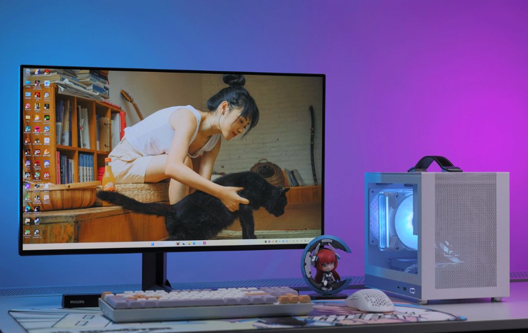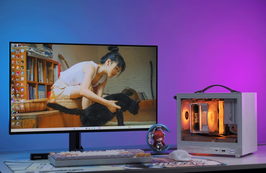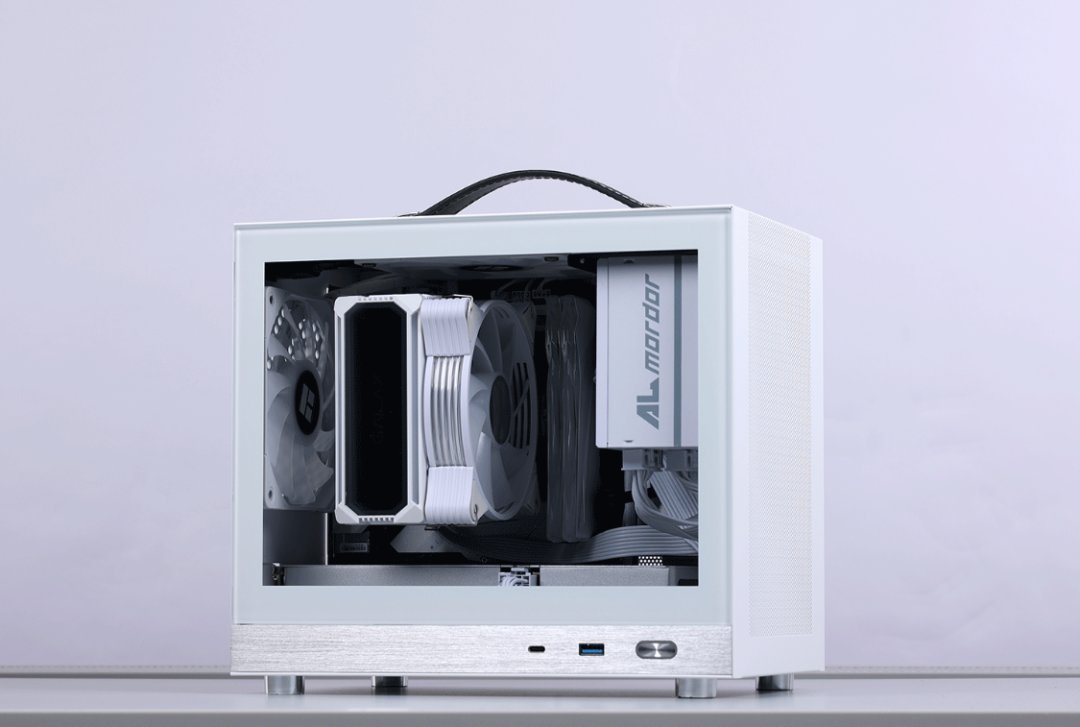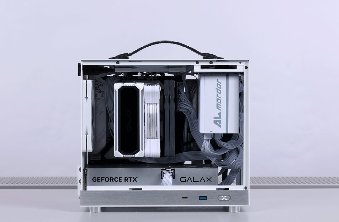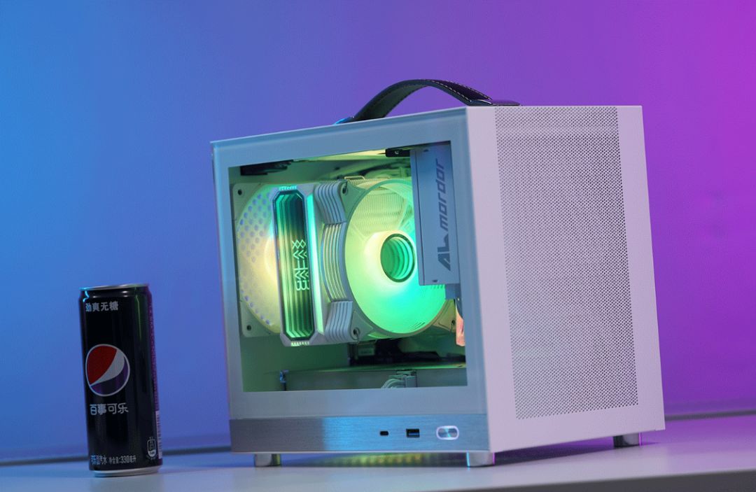 整机颜值方面想必应该没啥可挑剔的,侧透搭配ITX小主机,效果感觉也还不错。12.8L的小体积,包括学生宿舍在内的有限桌面也没啥压力。关键,还能随时提着走,对于学生党或者出差党来讲,也非常适用。