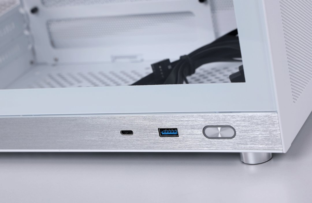 机箱I/O面板提供了1个Type-C、1个USB 3.0数据接口以及1个带有白色灯环的电源开关键,也基本能满足日常使用需求。
