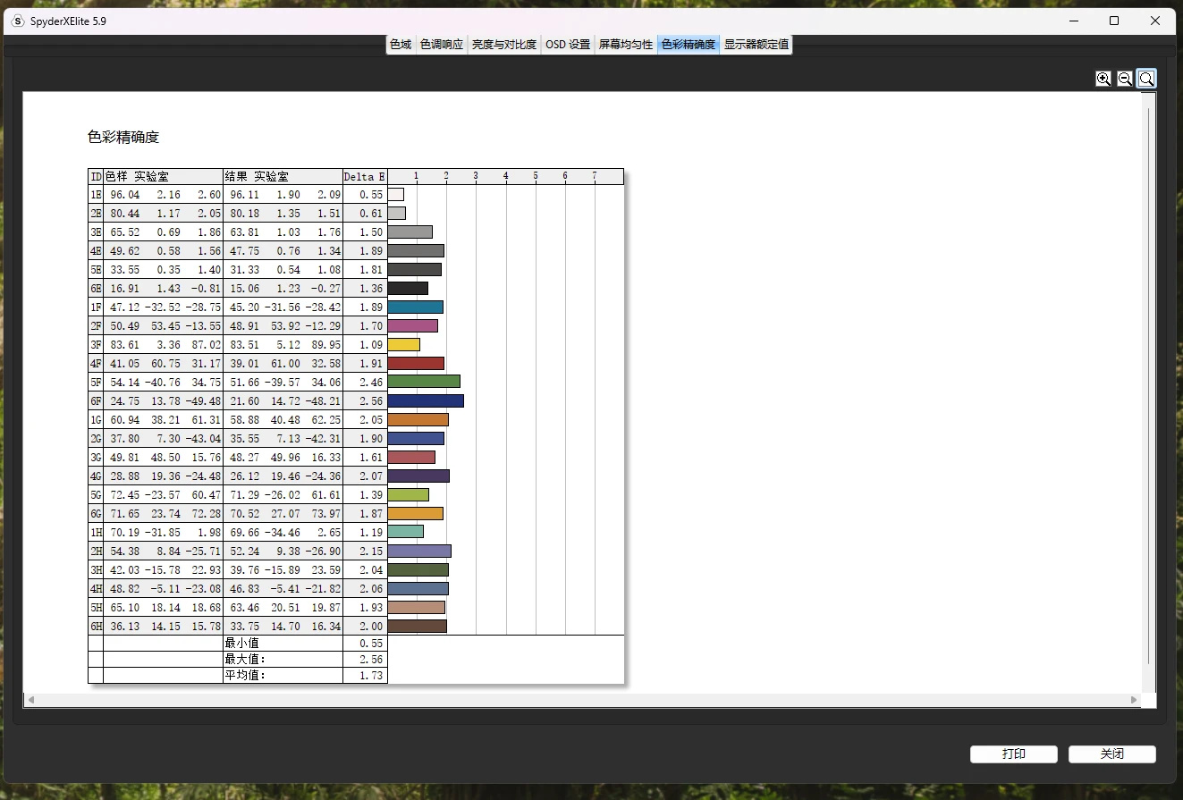 色彩精準度的測試結果更是好到離譜,官方出廠標準是≤DeltaE 2,實測值爲1.79,整體表現可以說是極其優秀。