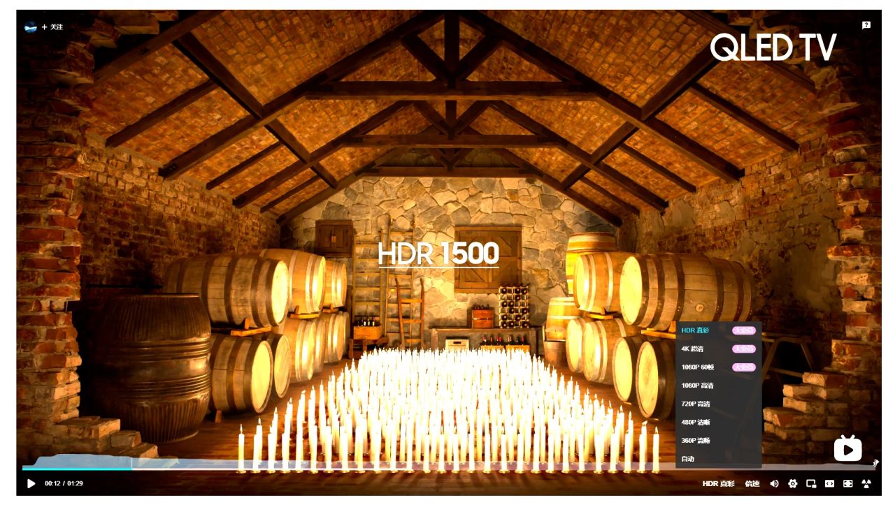 這裏使用B站的HDR測試視頻進行下展示,在普通顯示器上播放此視頻時,可以看到畫面高光過爆,暗處發白,整體畫面泛灰,毫無立體感和視覺深度。