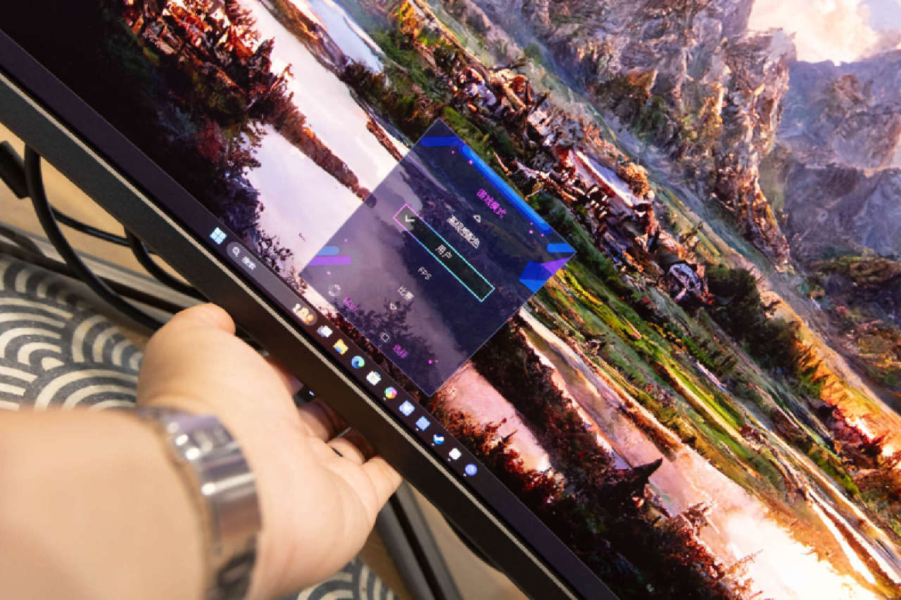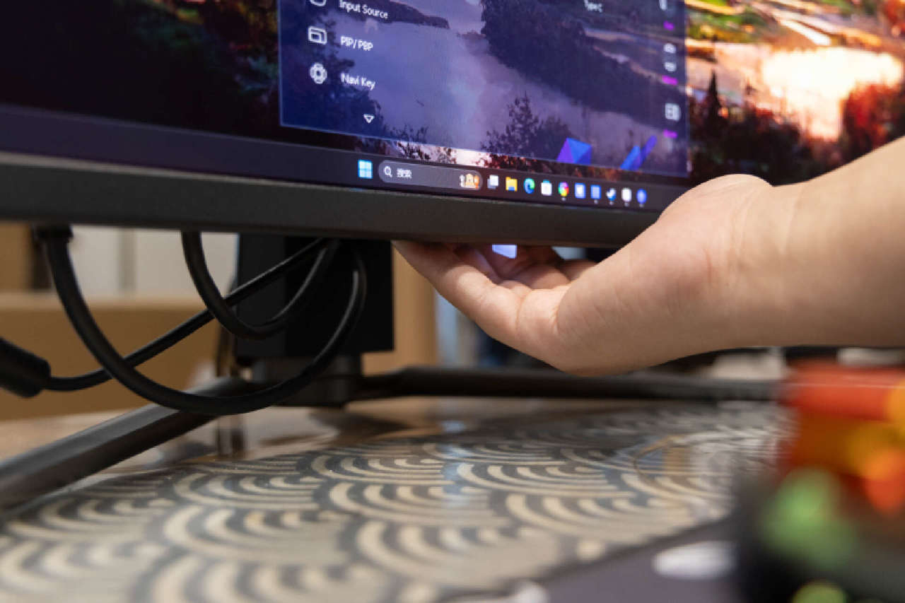 操控方面,這款顯示器使用了2個實體按鍵和備受好評的五維搖桿組合,搖桿位於屏幕正下方。所有按鍵均支持自定義設置,通過驅動或者面板菜單可以根據使用習慣來對按鍵進行設置。