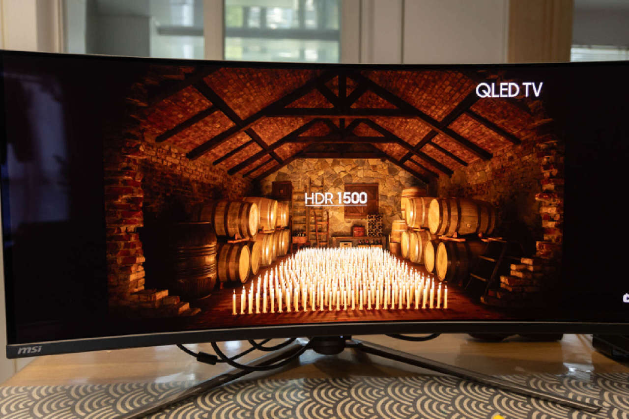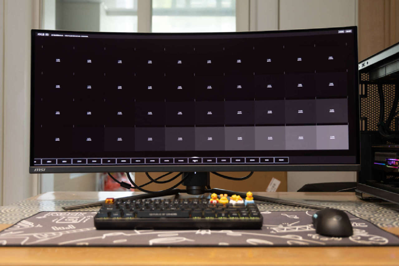 基準測試方面,得益於三星QD-OLED面板的超強屬性,在明亮的環境光下,微星MPG 341CQPX QD-OLED的純黑表現依然非常純淨,屏幕邊緣也沒有任何的漏光泛白的情況。