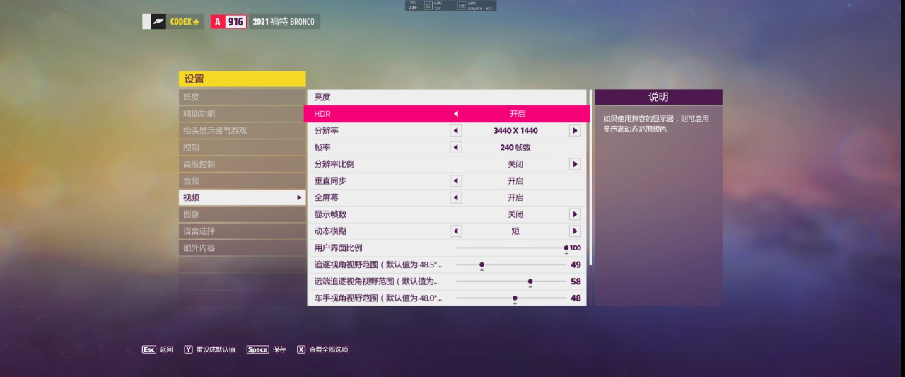 這裏我們使用大家比較熟悉的地平線5進行測試,在設置中開啓240Hz刷新率。