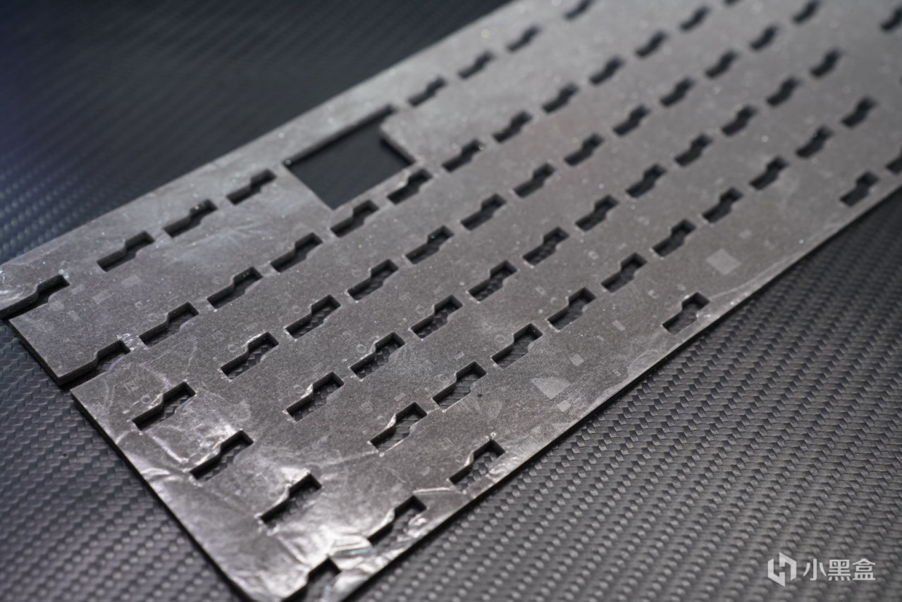 夹心棉这里采用的是poron材质的棉,poron棉可让键盘整体的声音变的更闷一点,这里是我比较喜欢的一种键盘内部填充的方案。