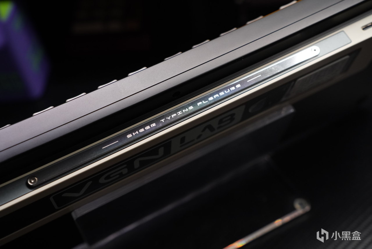 键盘侧边依旧采用的是s99的设计,侧边使用了格外的金属装饰条的设计。这把键盘的工业设计依旧是很多。
