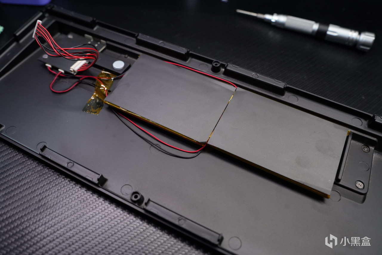 键盘底部只有俩快电池以及一个c口电路板组成,很简洁。