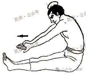 18.拉伸身體:兩腿伸直,兩手平行前舉。右手握住左手的四個手指(不包括拇指)。左臂用力向前,同時身體前傾。右手拇指用力壓左手小指側,使左手掌向外翻。左右各做6次。這三種身體前傾的動作對腰部和腎臟有好處,可以預防和治療腰痛等問題。(圖6)