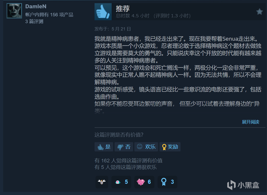 如同steam评论区有玩家的留言:她也经历过走出精神疾病的痛苦,所以也能对游戏中的表现形式感同身受,这样的游戏可能不够商业化,但是还是体现了十足的人文关怀,值得点赞。