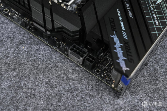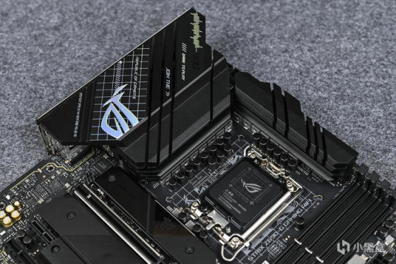 VRM散热模组完整覆盖了整个MOS跟电感,上面是不会发光的ROG信仰标。