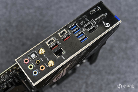 一体式I/O挡板设计已经成为主流,视频输出接口有HDMI与DisPlayPort各一个、2个USB 2.0,4个USB 3.2 Gen 1,2个USB 3.2 Gen 2 Type-A,2个USB 3.2 Gen 2*2 Type-C,1个SPDIF输出,WIFI6网卡和7.1数字环绕声接口,CLEAR BIOS以及BIOS FLBK,支持在不安装CPU、内存、显卡的情况下刷新BIOS。