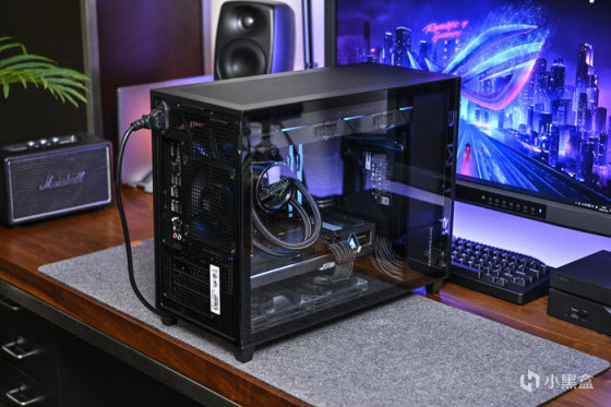打开机箱左侧钢化玻璃侧板,主板侧各角度展示。